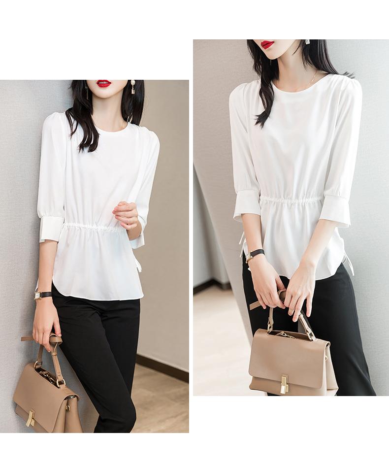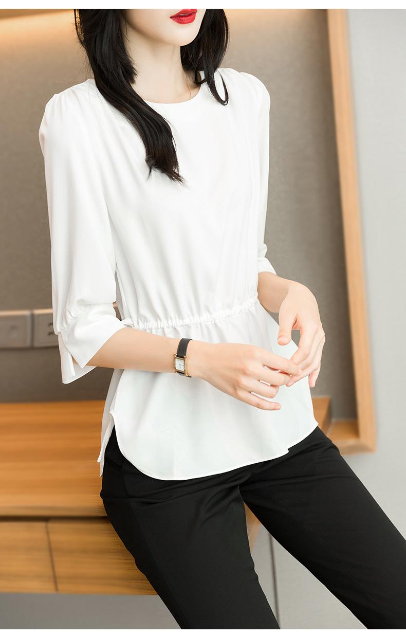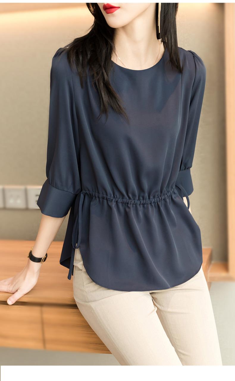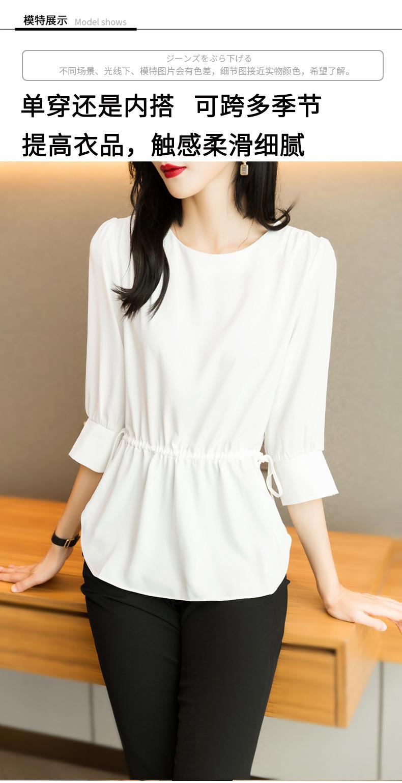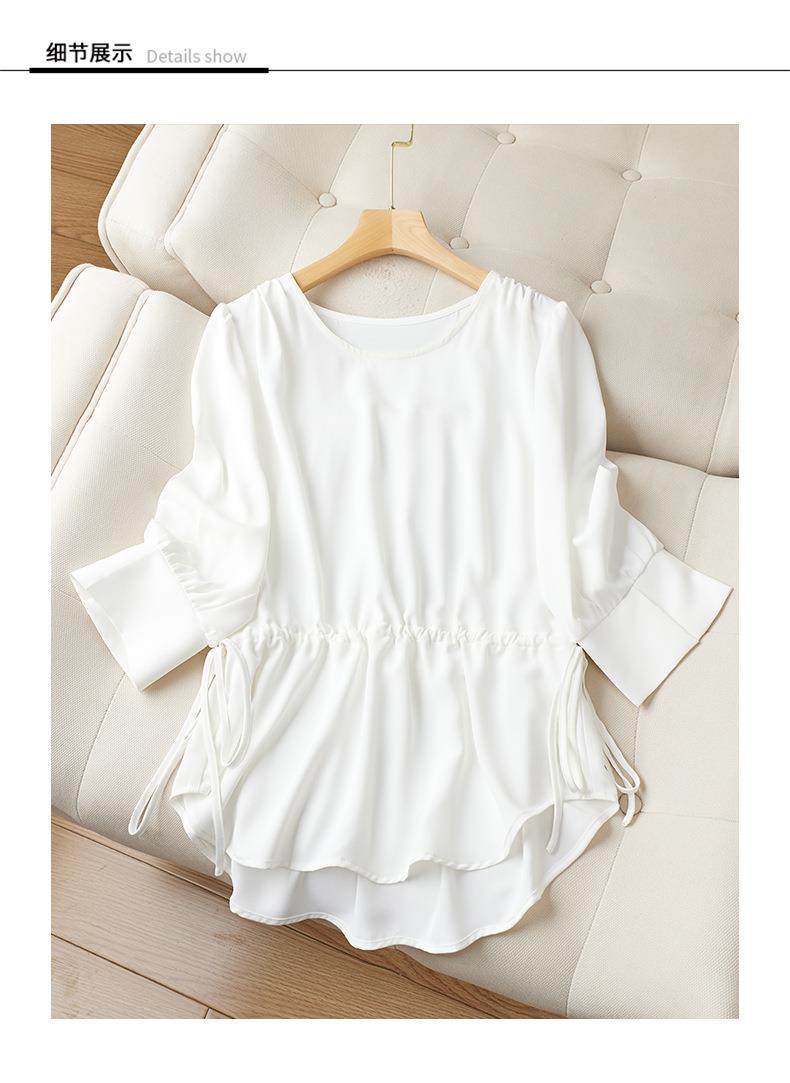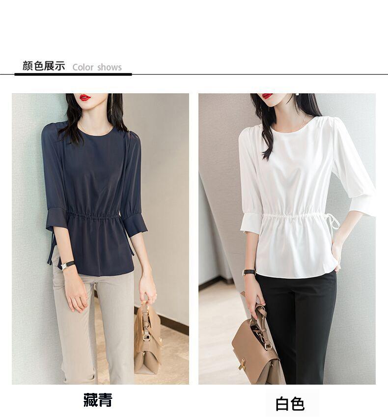 2023夏季新款雪纺衫七分袖衬衫女宽松大码衬衣圆领显瘦