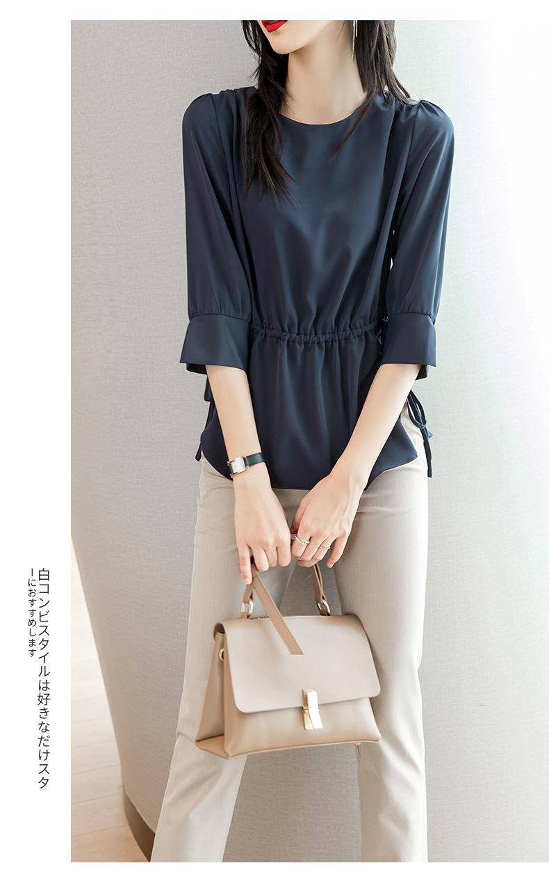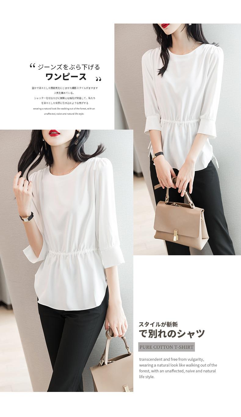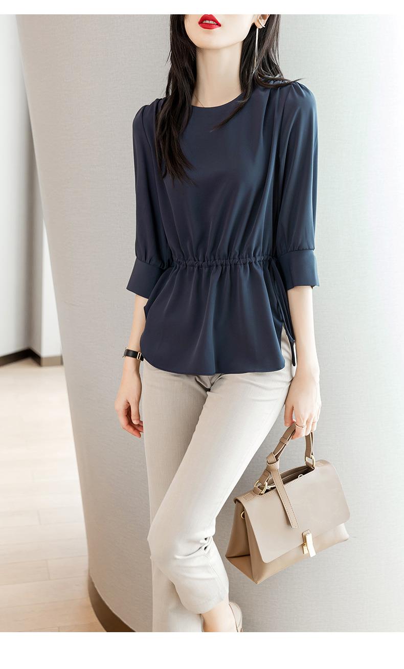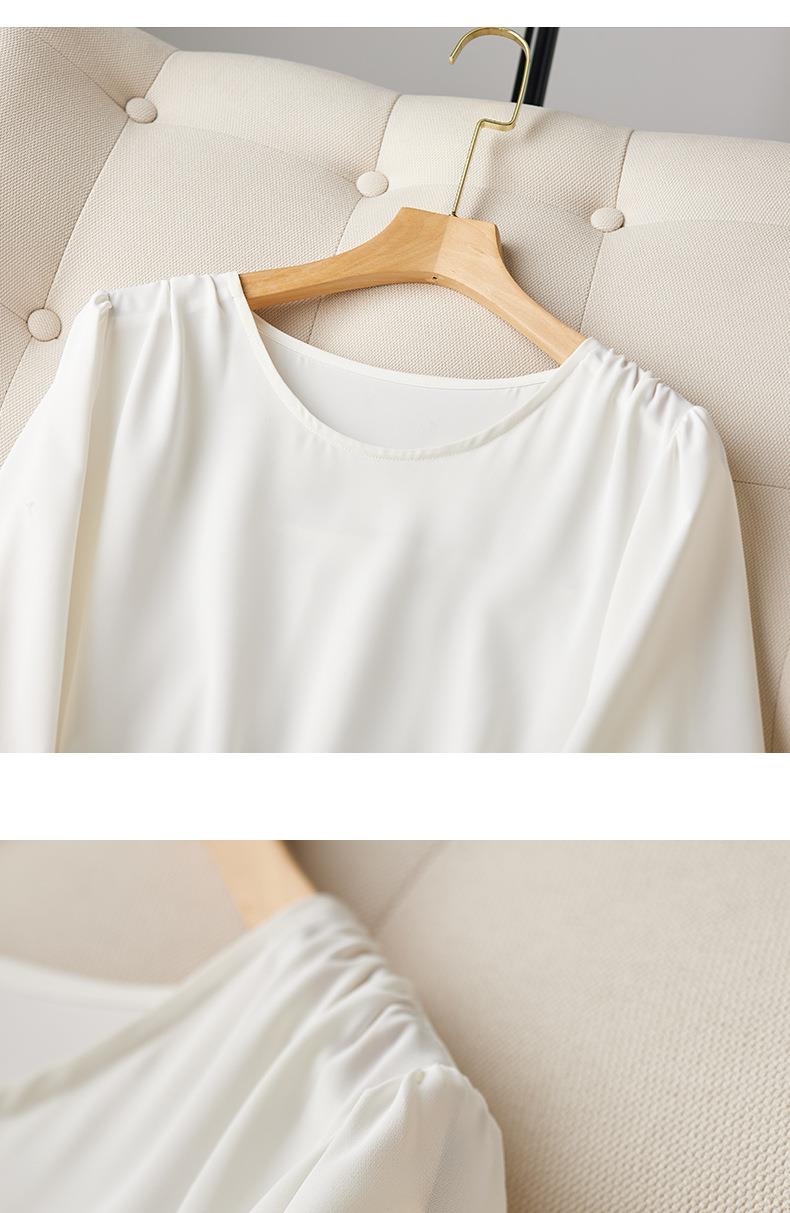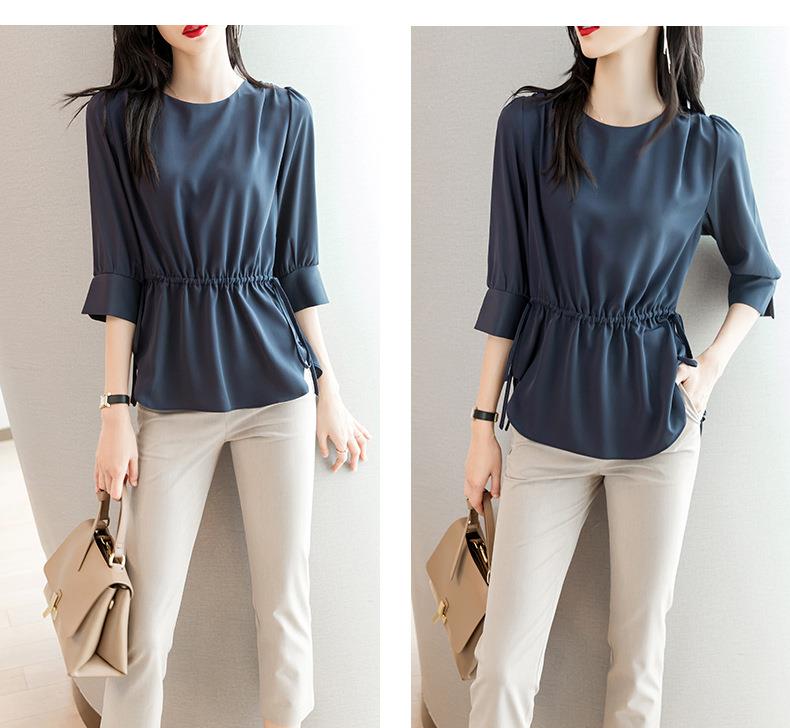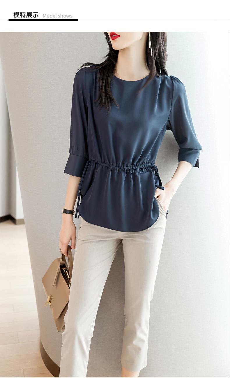 2023夏季新款雪纺衫七分袖衬衫女宽松大码衬衣圆领显瘦