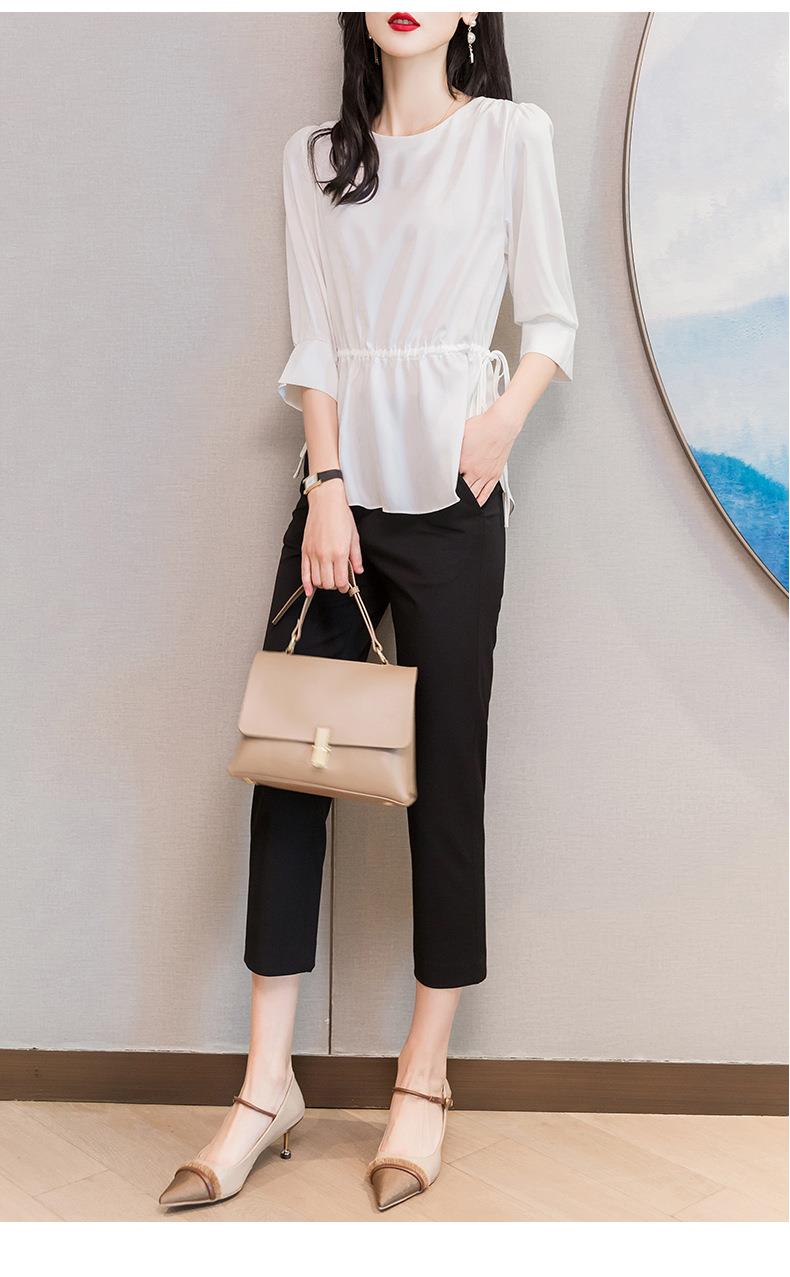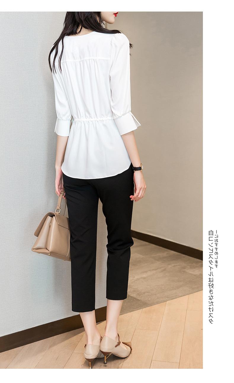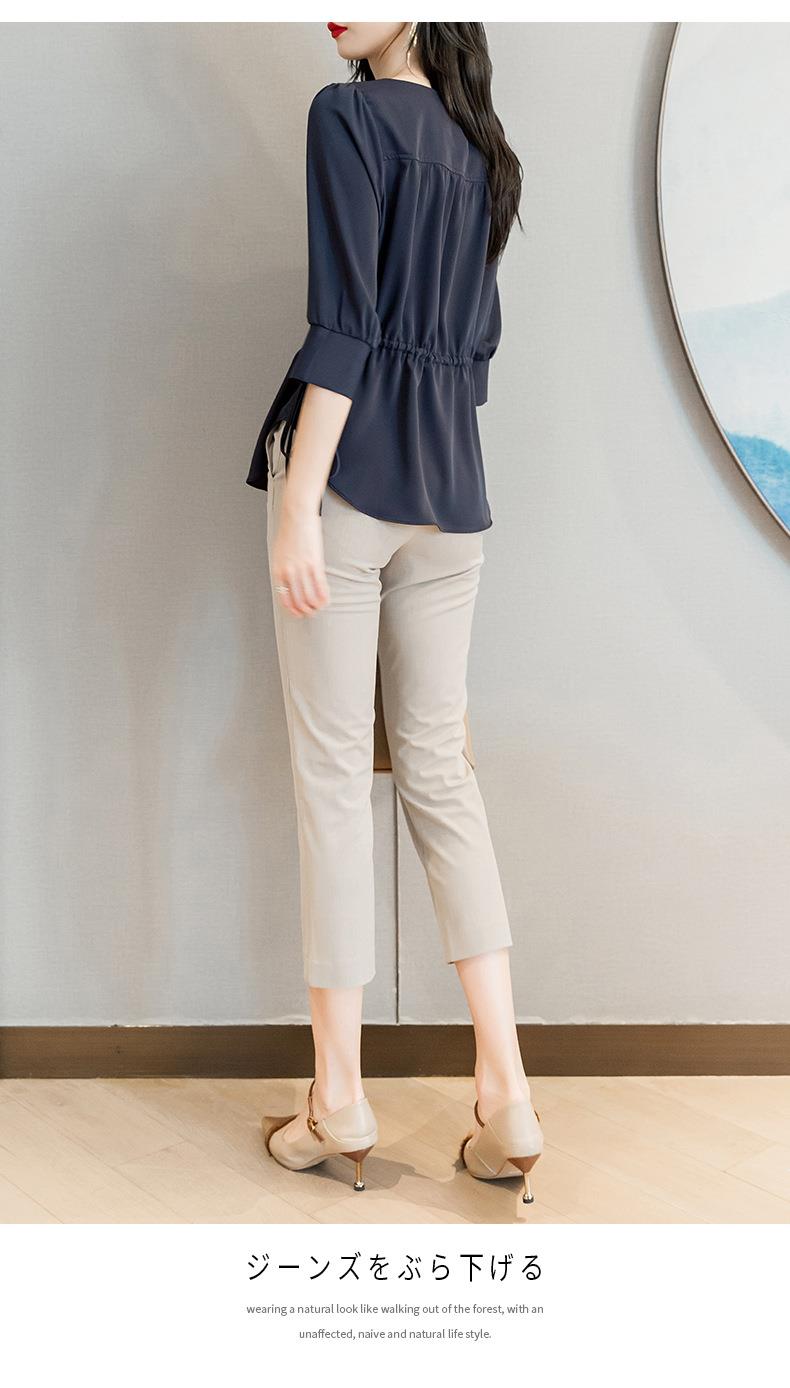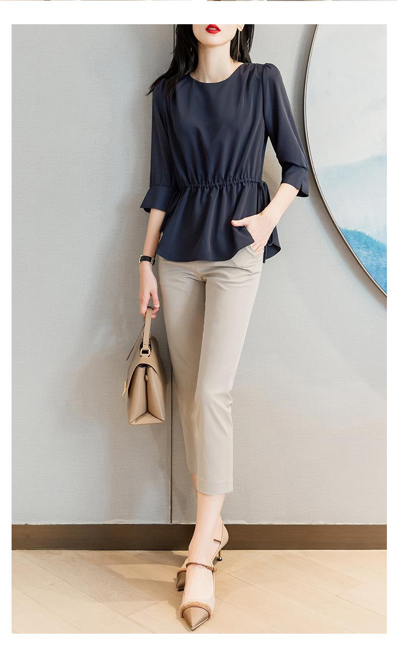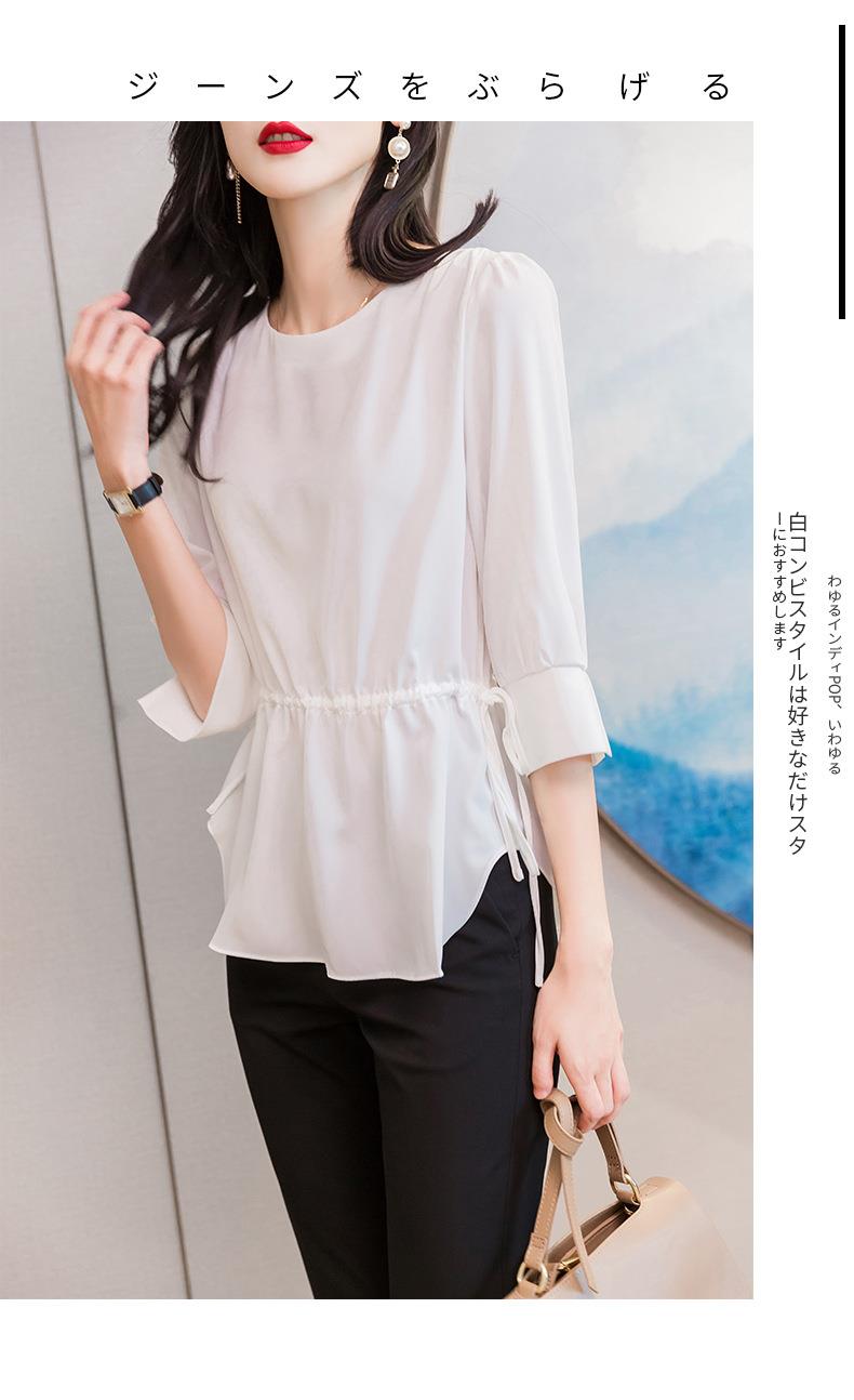 2023夏季新款雪纺衫七分袖衬衫女宽松大码衬衣圆领显瘦