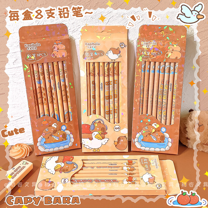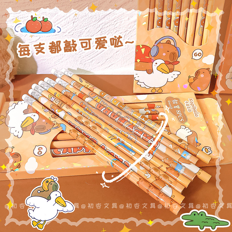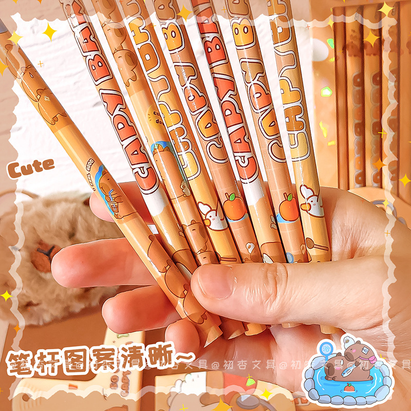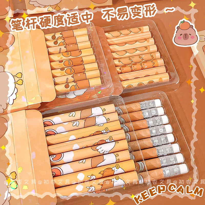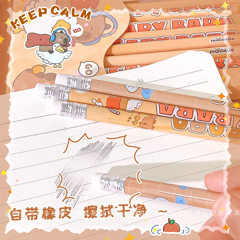 【敲好看!卡皮巴拉铅笔】HB圆杆木头铅笔ins高颜值卡通可爱学生自带橡皮儿童专用铅笔。ry