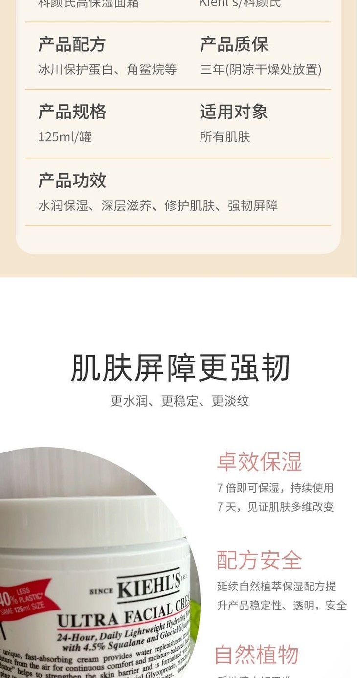 【买一送一】Kiehl's科颜氏高保湿面霜125ml补水保湿滋润修护 果冻清爽面霜125ml