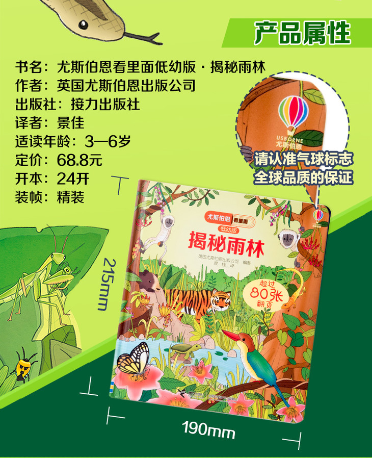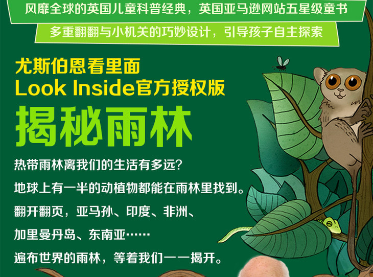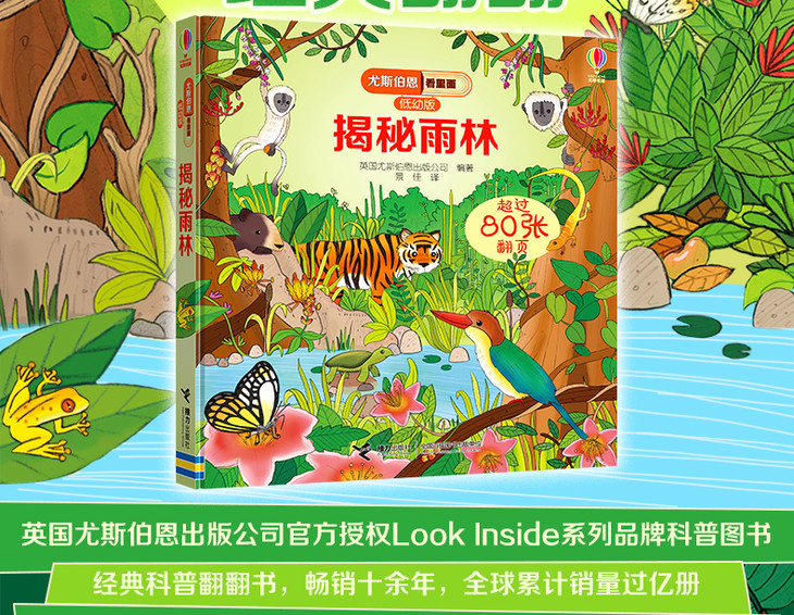 尤斯伯恩看里面(低幼版)·揭秘雨林 Look Inside揭秘系列图书,荣获英国“地理学会”银奖,80多张翻页,揭开神秘雨林的精彩