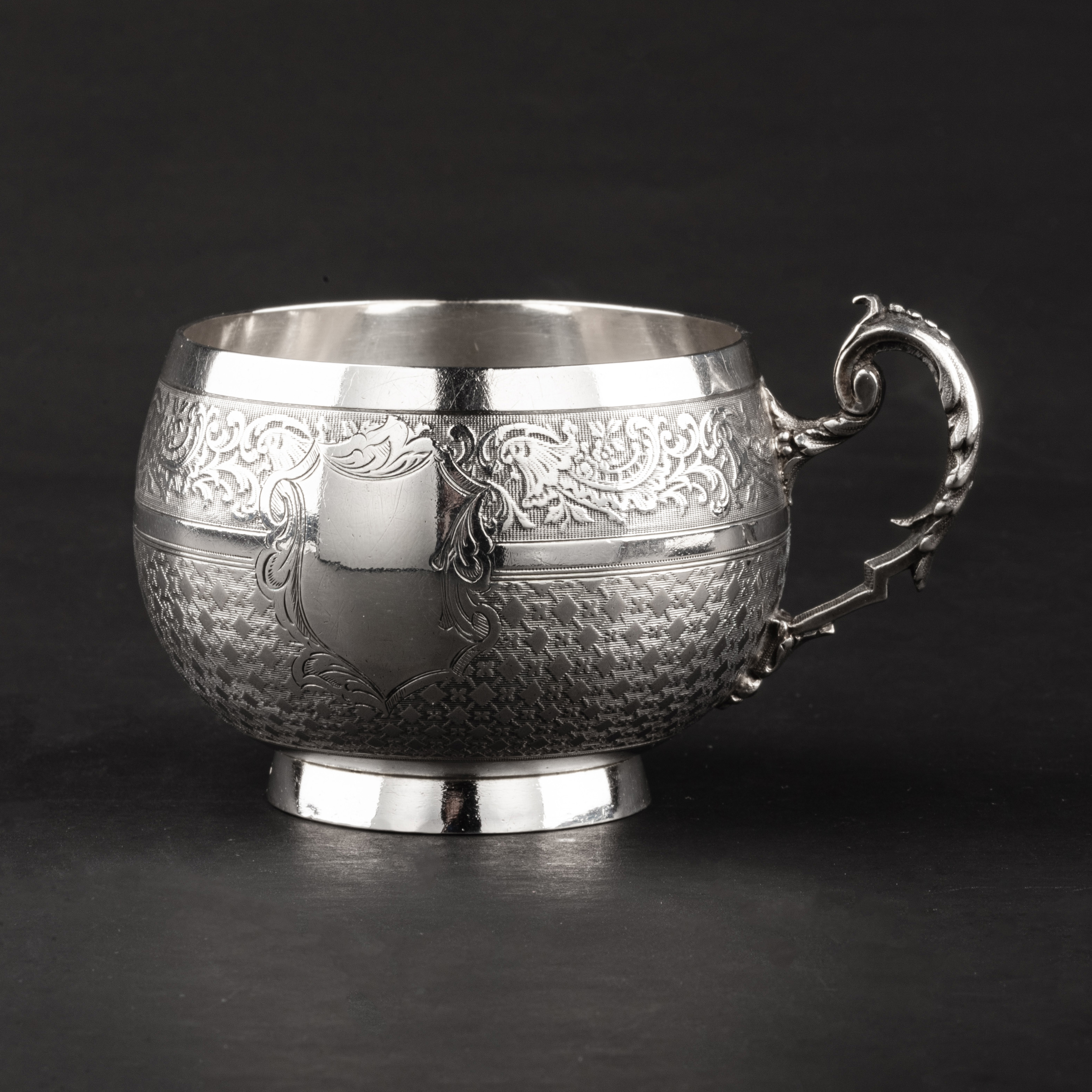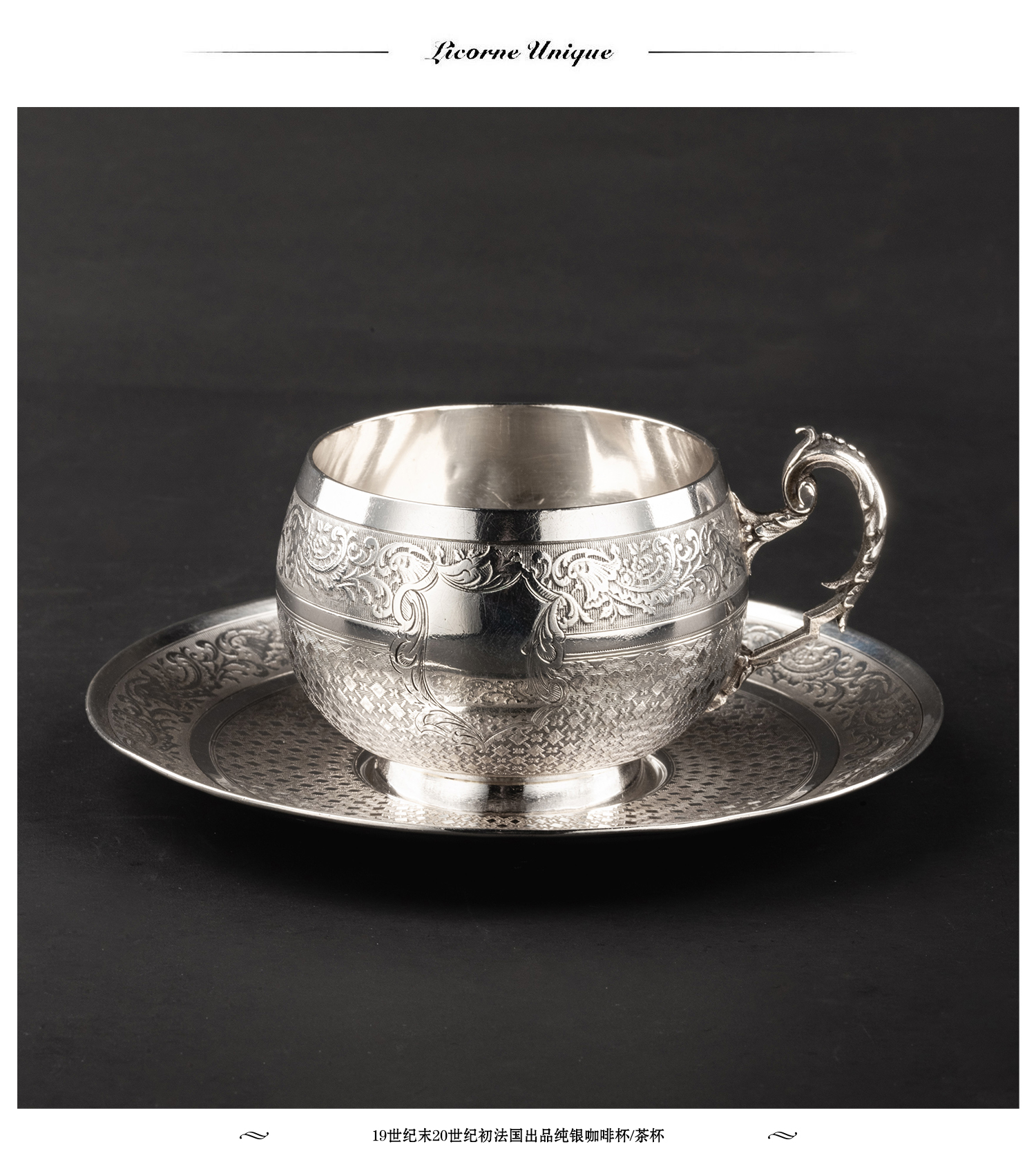独角鹿西洋古董银器19世纪末20世纪初法国出品纯银咖啡杯/茶杯