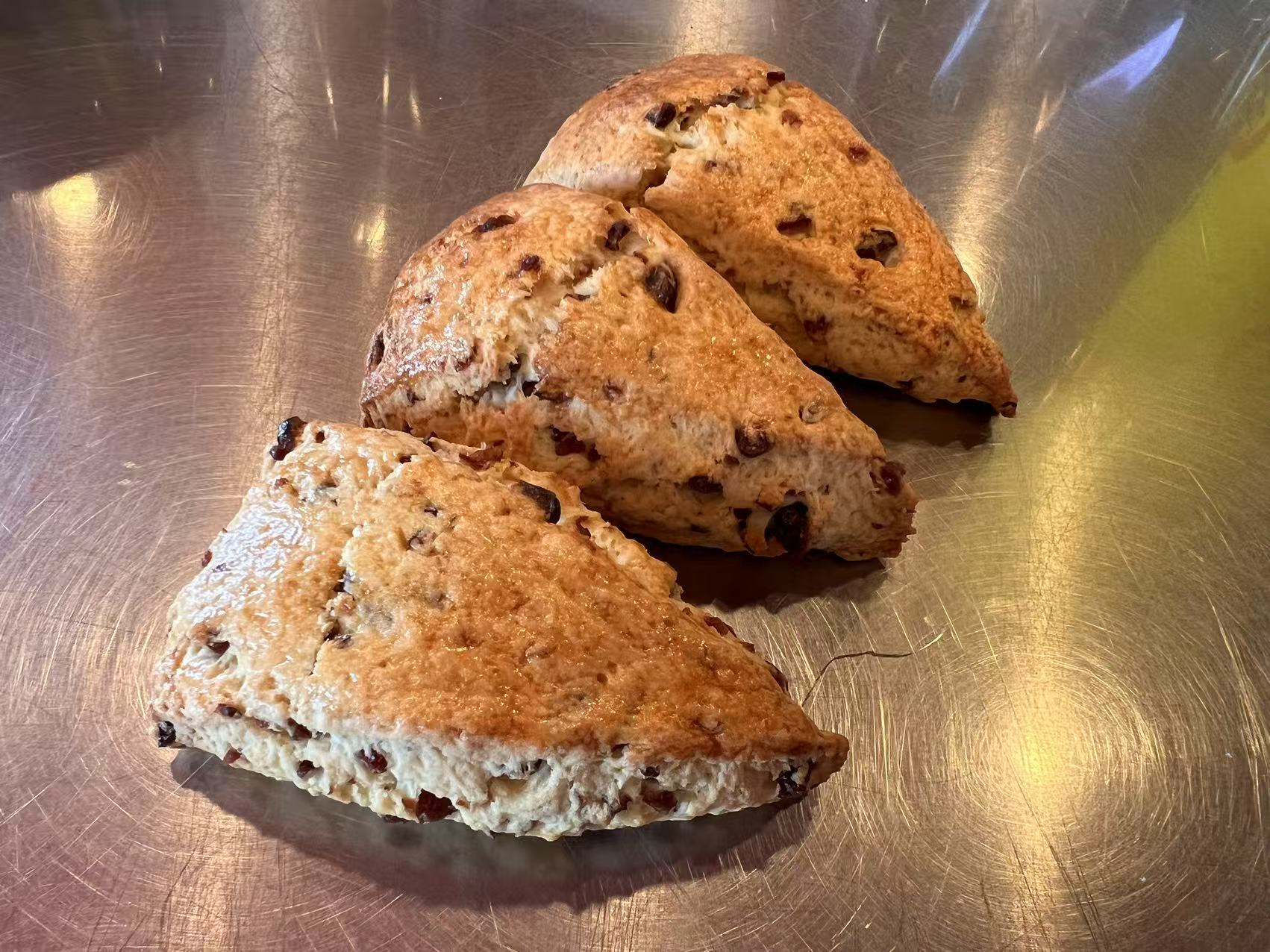 复热过的司康外酥内软,颗颗蔓越莓干像藏在晨露里的红宝石,咬破酥脆外壳的瞬间,酸甜果香立刻在舌尖起舞。