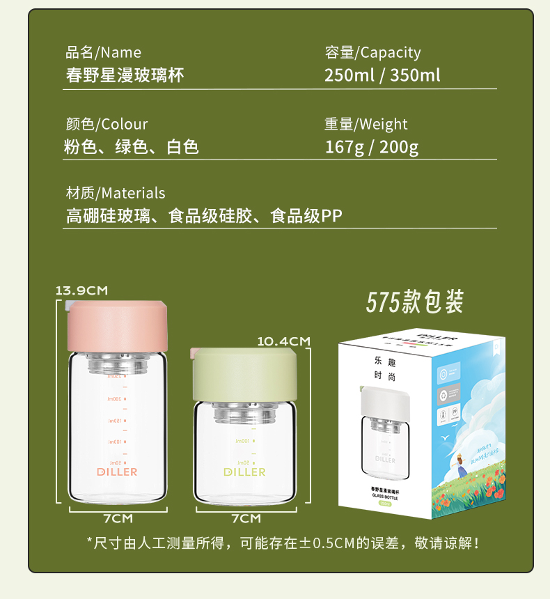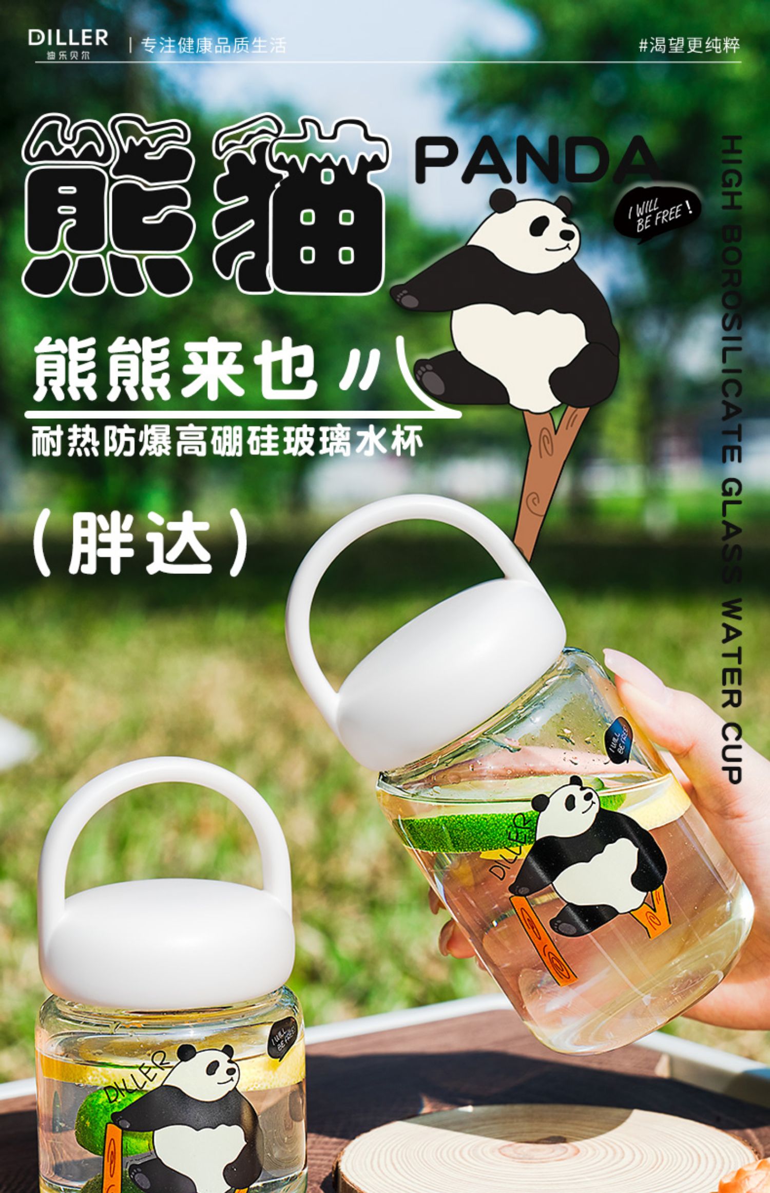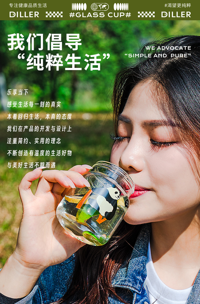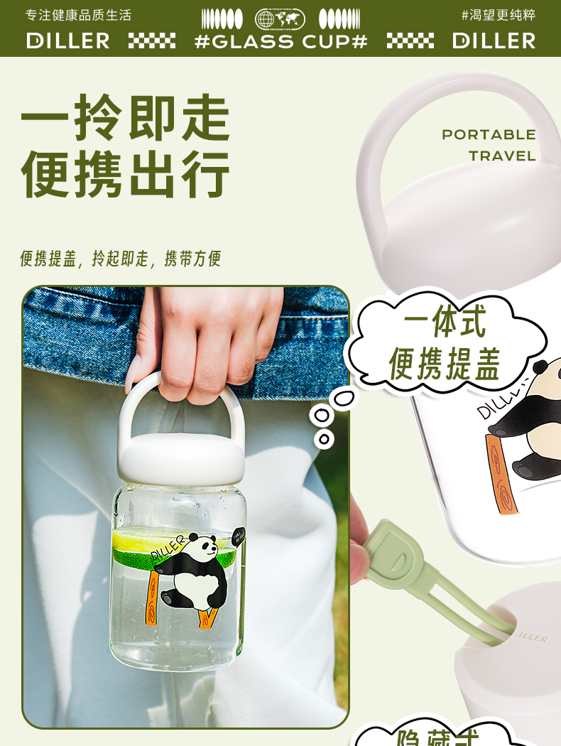 diller迪乐贝尔泡花茶玻璃杯女生高颜值办公室网红茶水分离泡茶杯2024新款