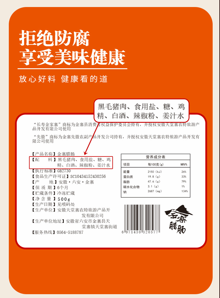 【新品推荐】安徽六安【先徽|金寨腊肠】500g/袋 肉质鲜嫩 美味健康