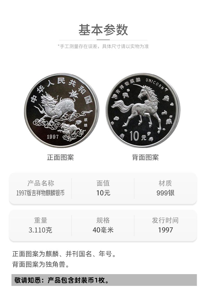 【老精稀】1997年吉祥物麒麟1盎司银币·封装版