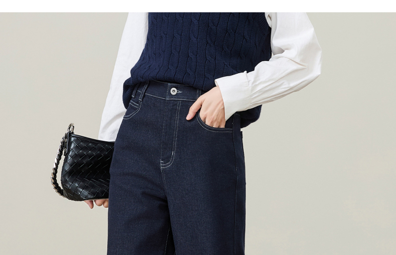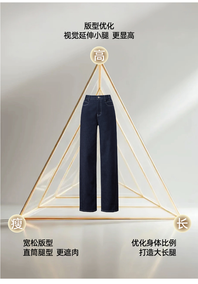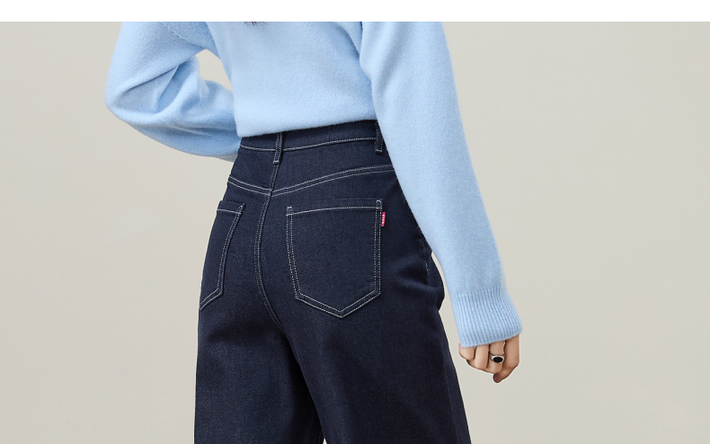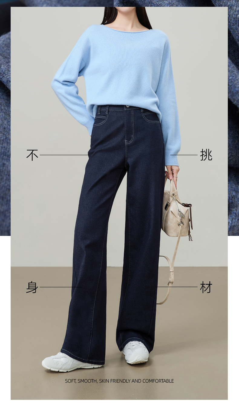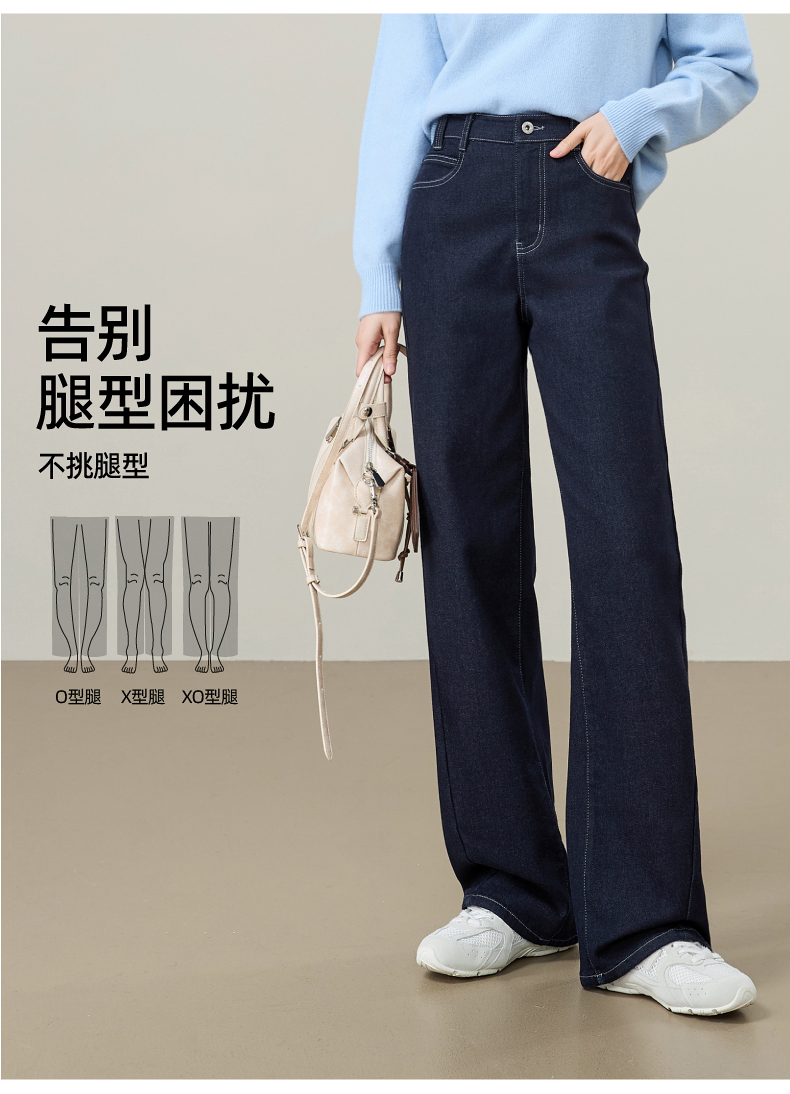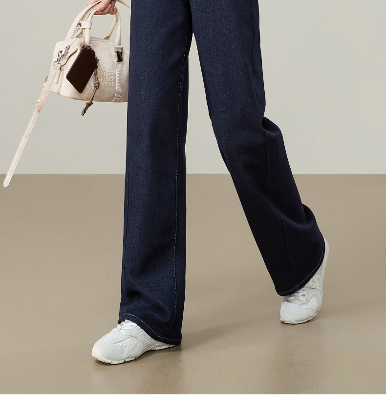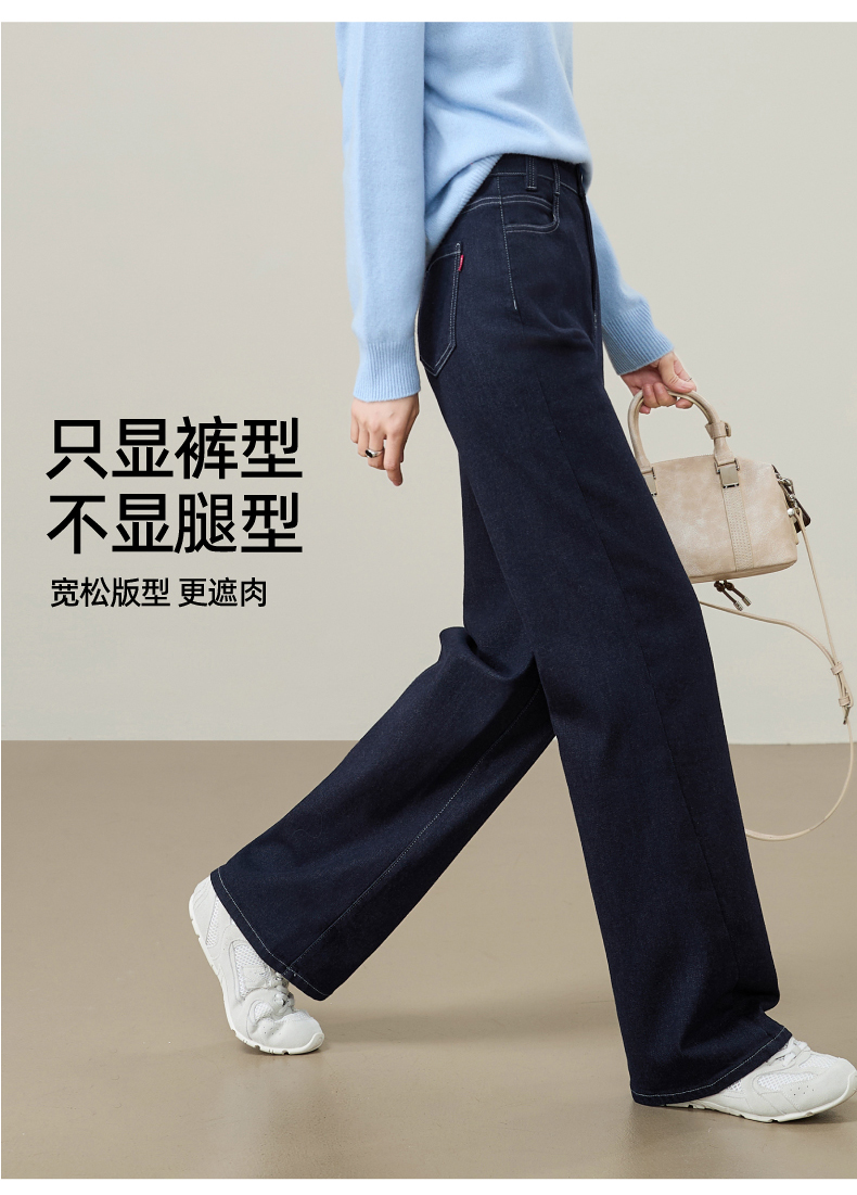 【羊毛-长直筒牛仔】逸阳秋新品深蓝色宽松顺直宽松直筒牛仔裤8320