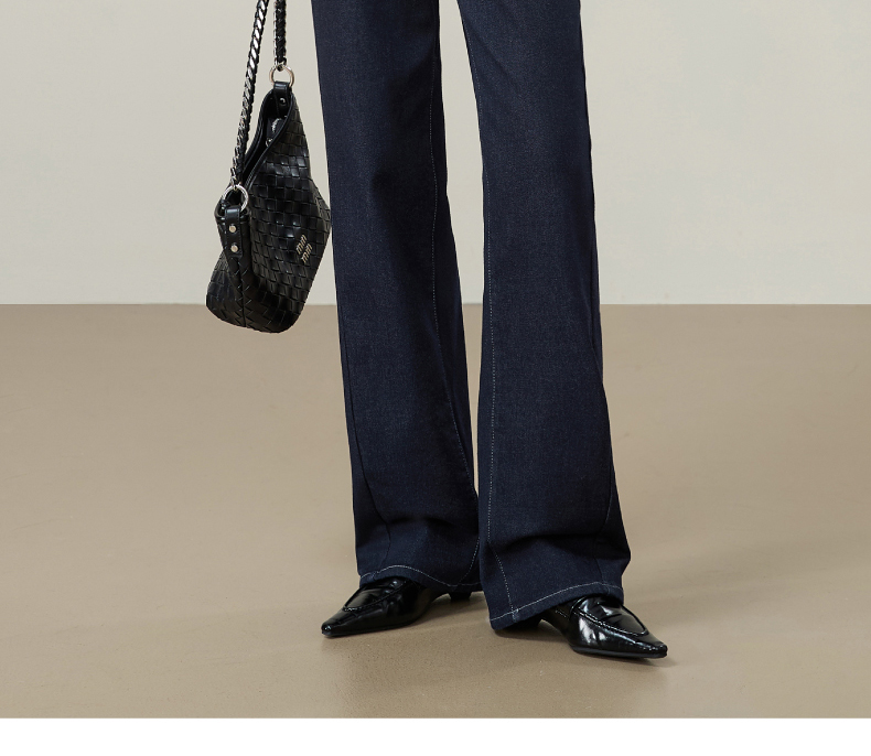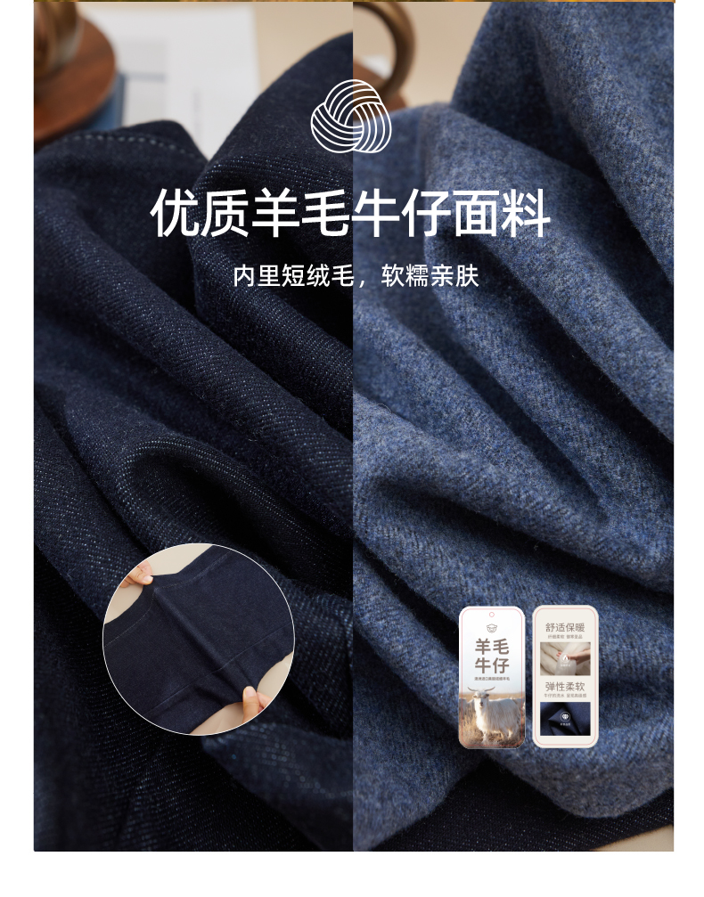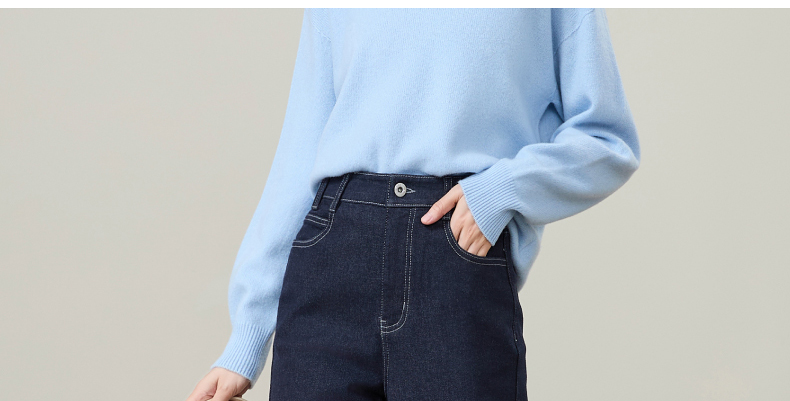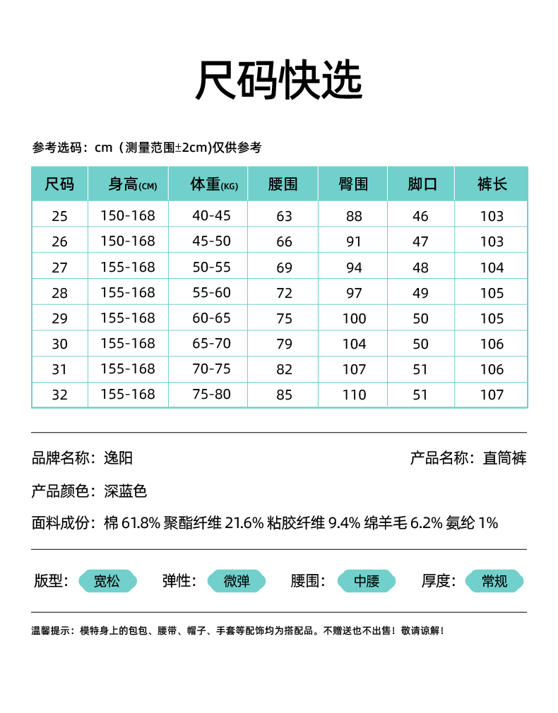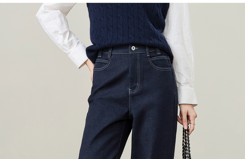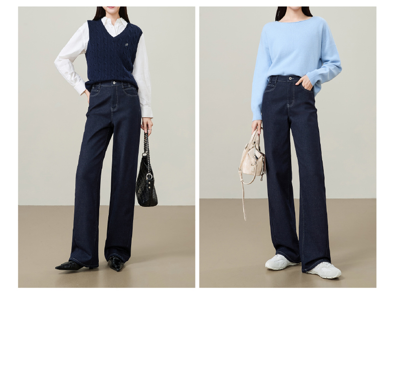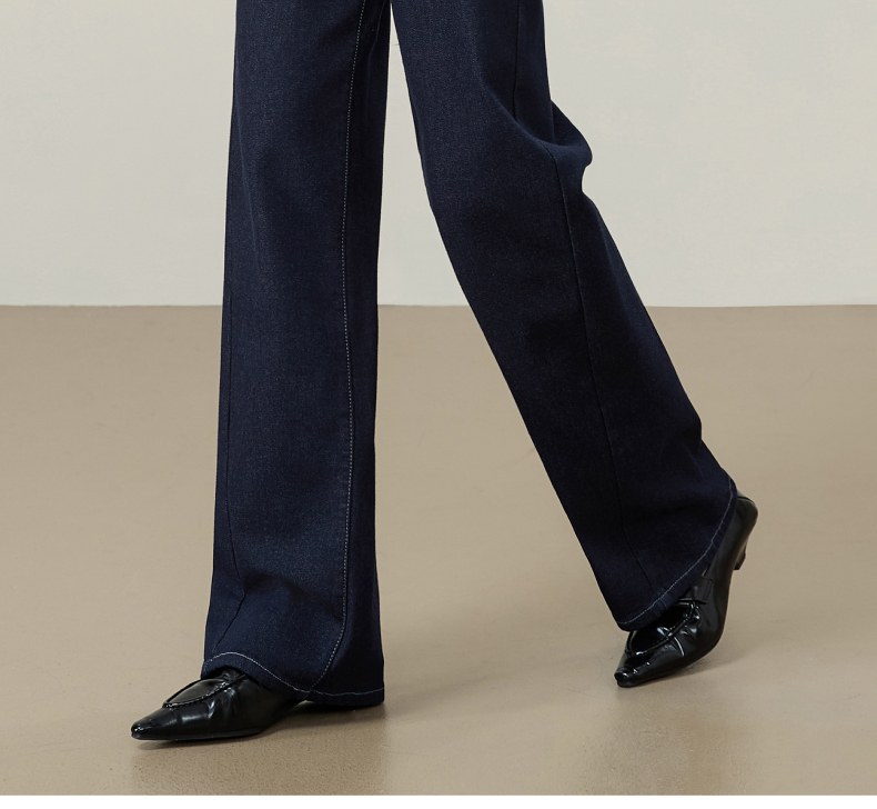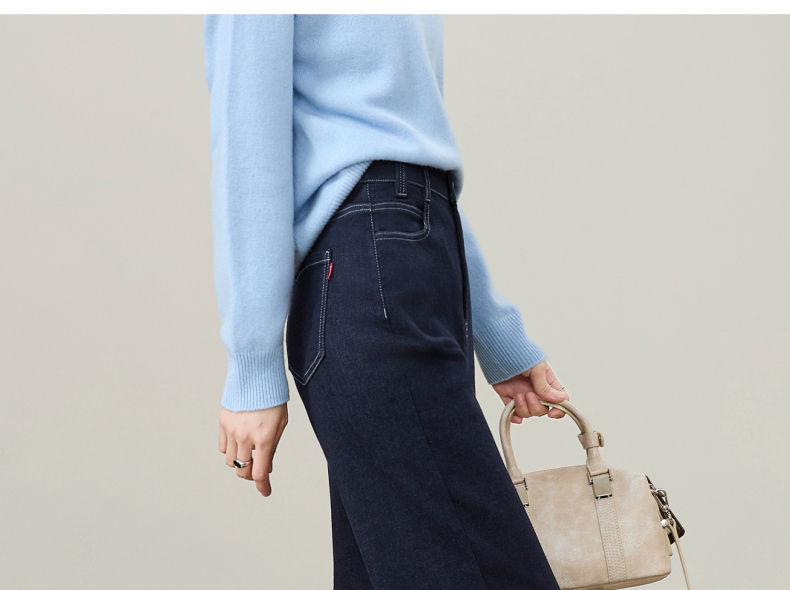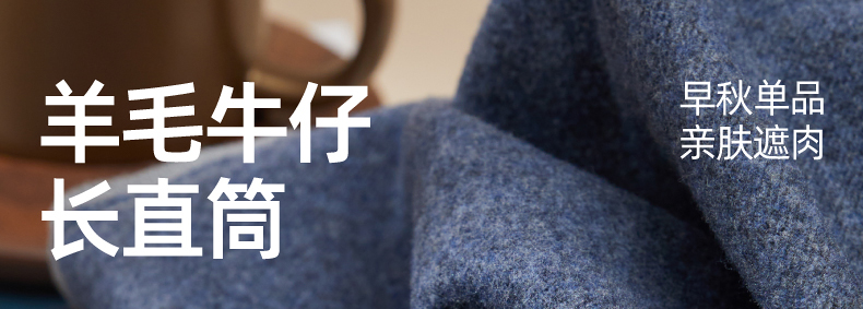 【羊毛-长直筒牛仔】逸阳秋新品深蓝色宽松顺直宽松直筒牛仔裤8320