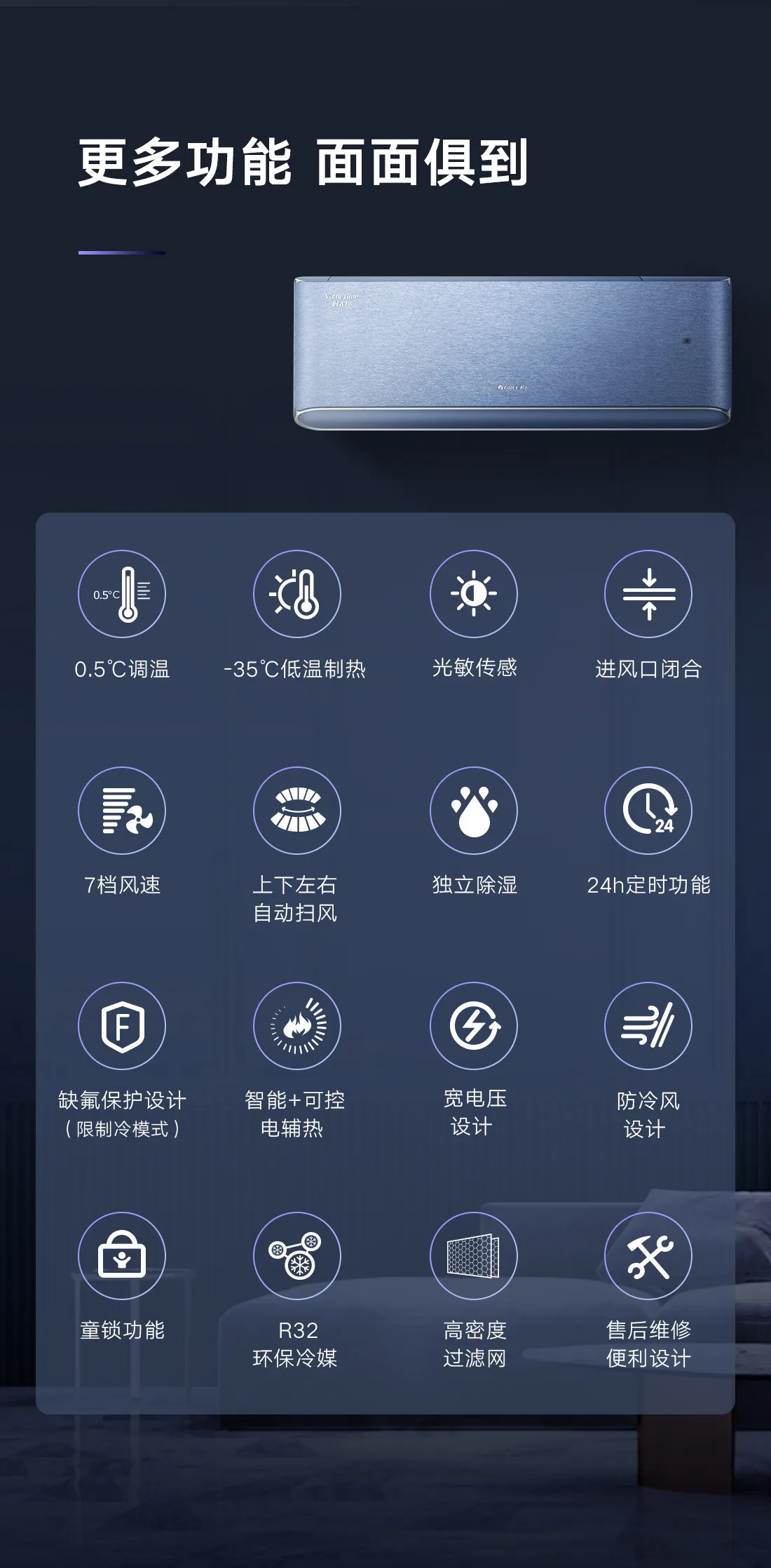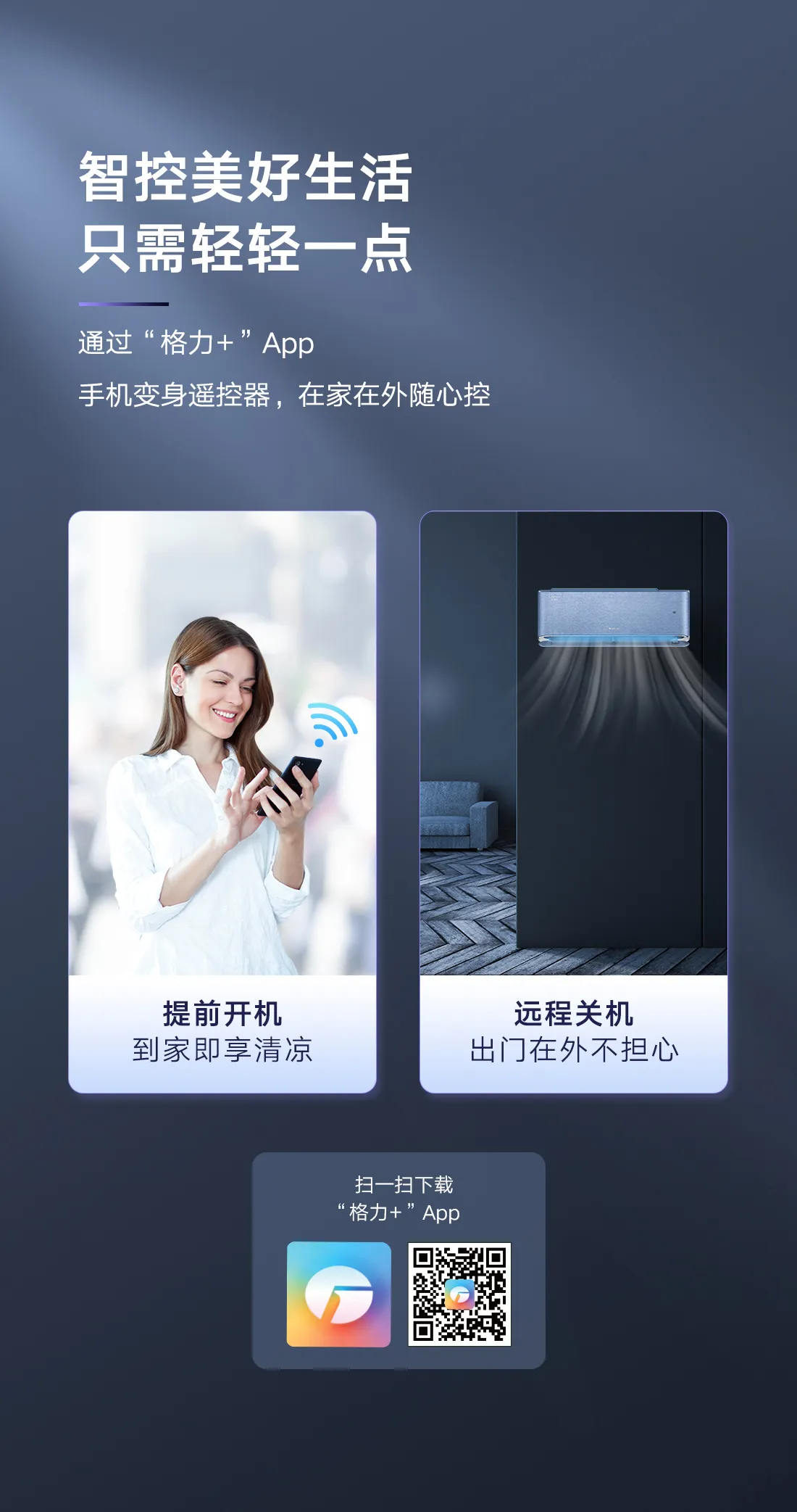 格力·时光序变频冷暖大1匹1级能效挂机空调 KFR-26GW/(26516)FNhAb-B1(WIFI)(苍穹蓝)