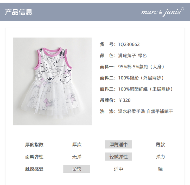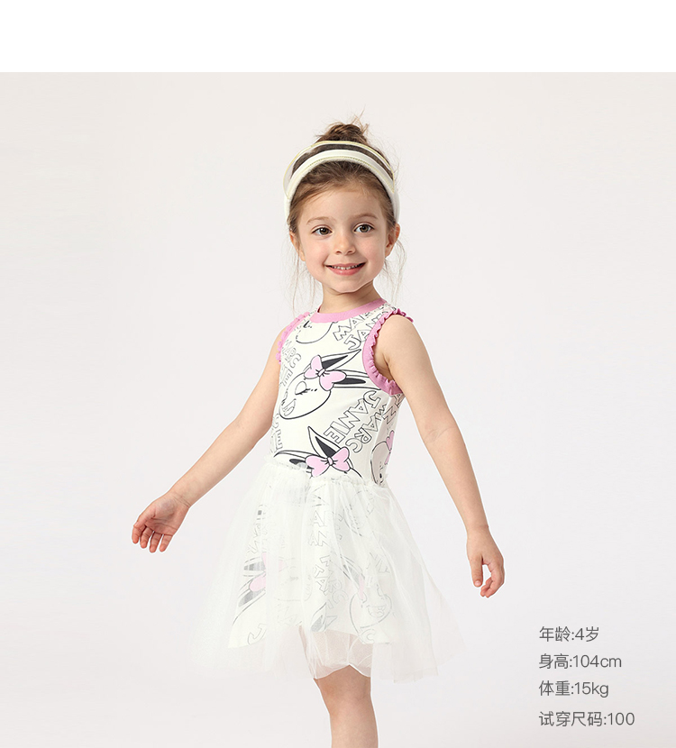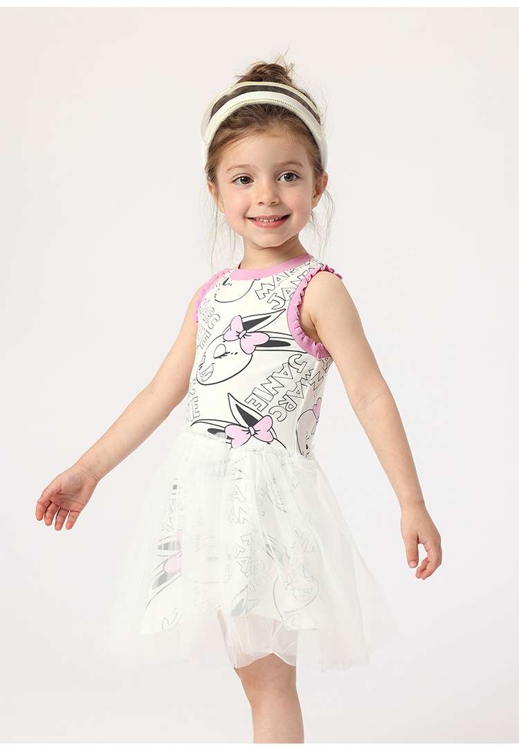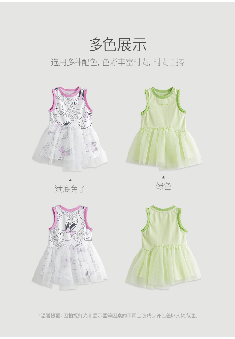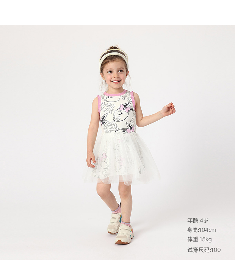 马克珍妮夏装新款裙子 女童网纱拼接运动背心连衣裙230662