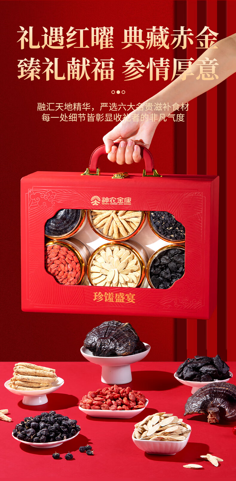 神农金康 西洋参礼盒黑枸杞灵芝黄芪六拼滋补礼盒388g中秋礼品送礼送长辈