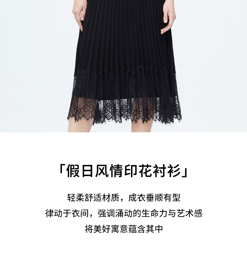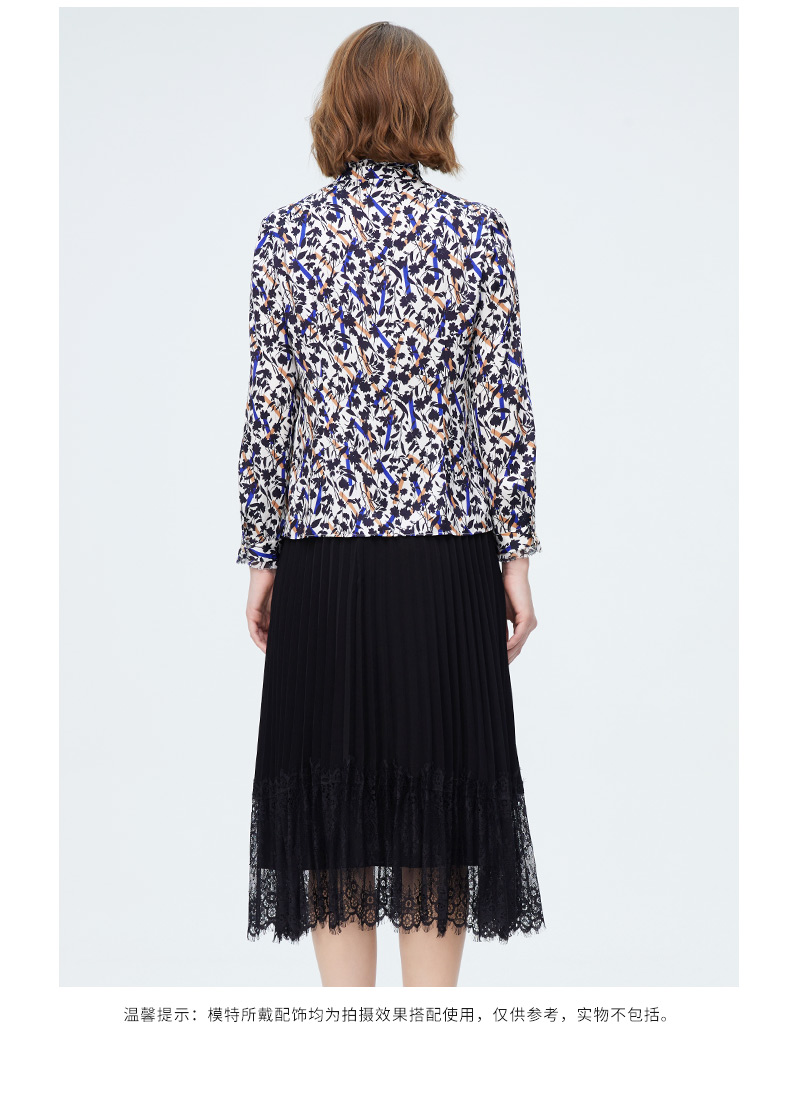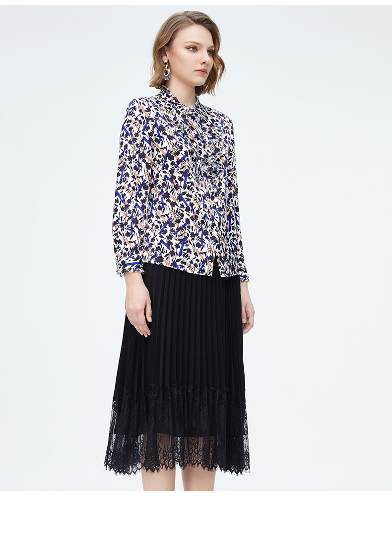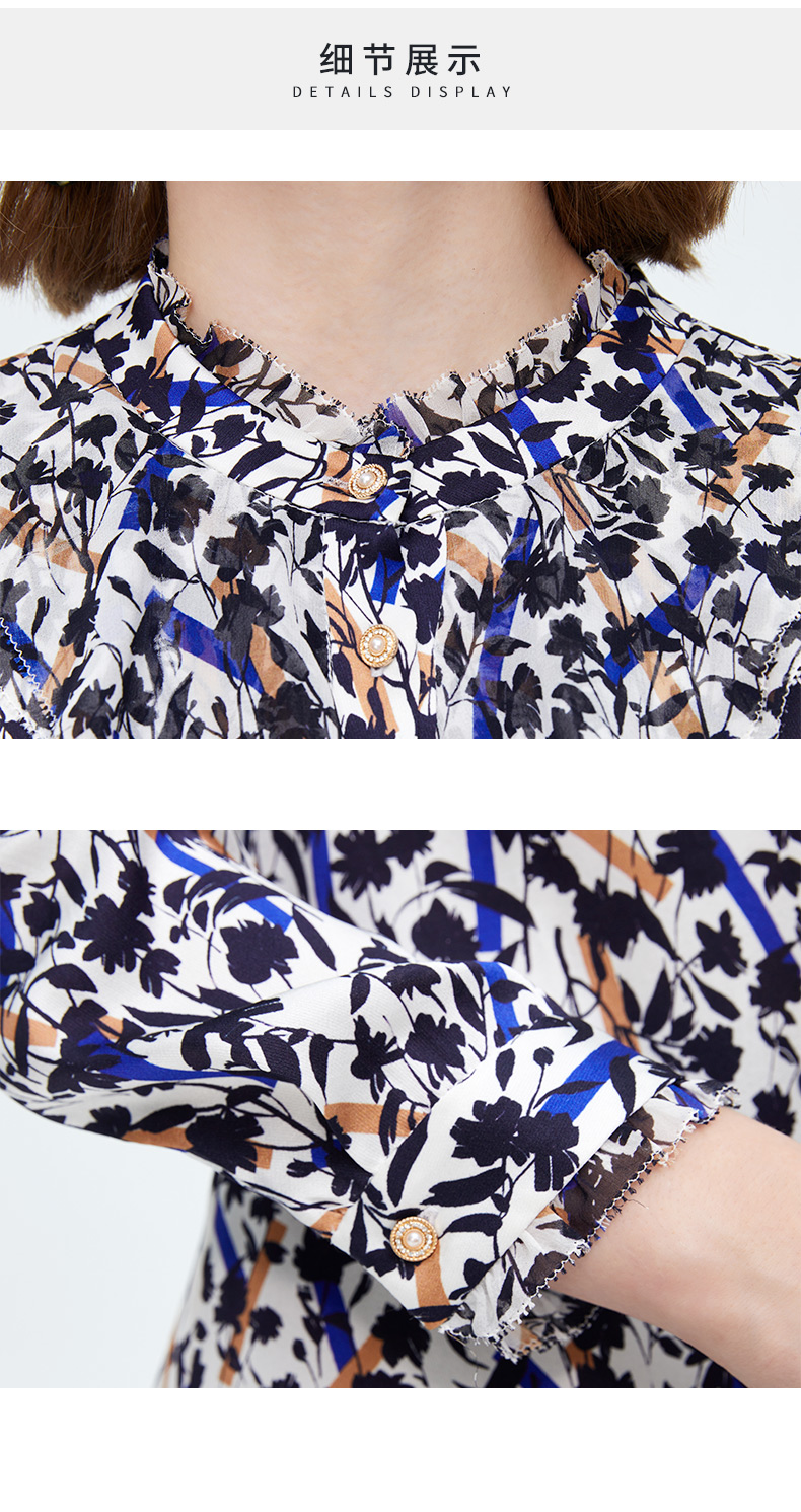 皮尔卡丹女装新款时尚印花荷叶领简约衬衫P4124B4012N3