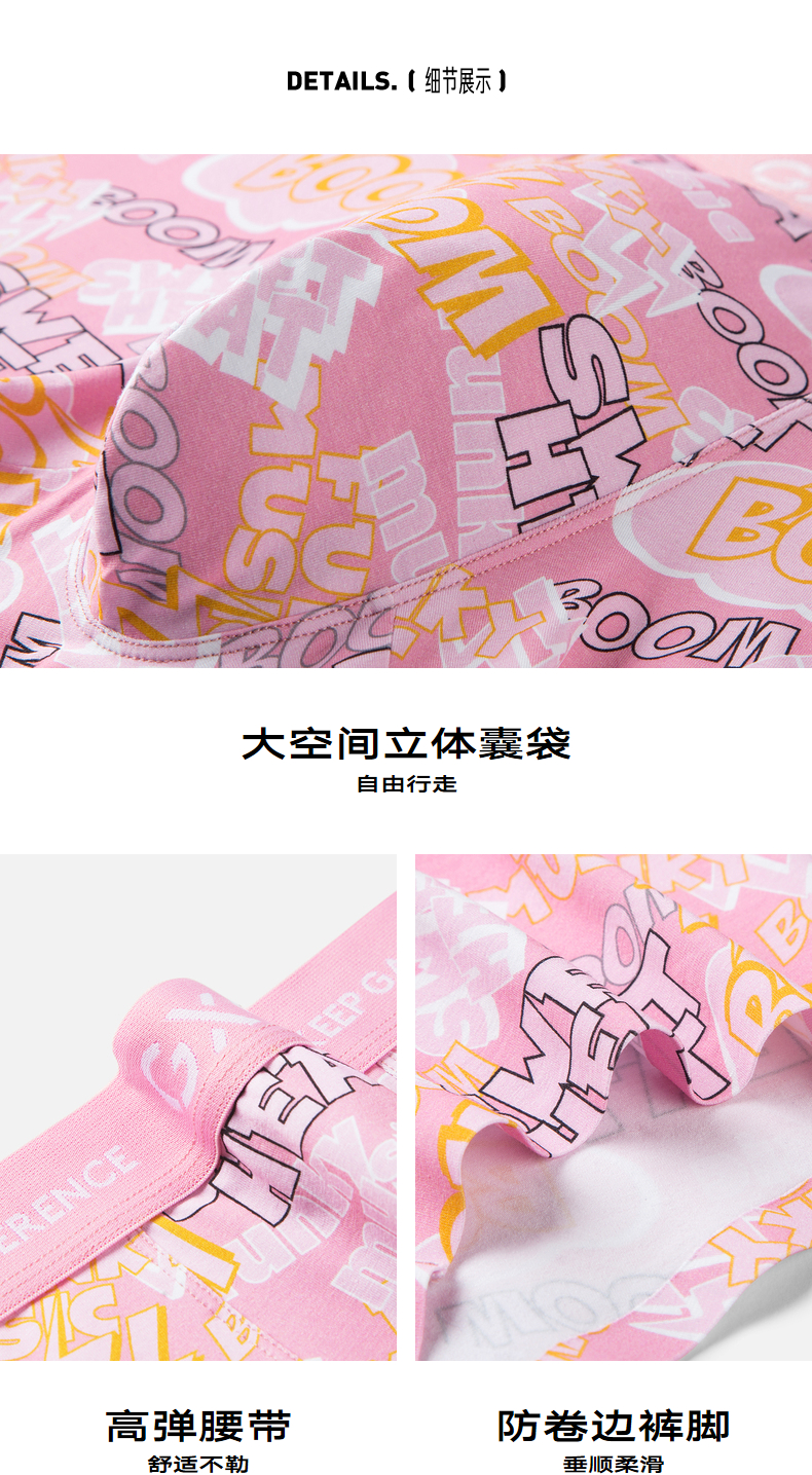 GXG男士内裤【单条装】粉色卡通印花内裤男棉质莫代尔男生内裤夏季