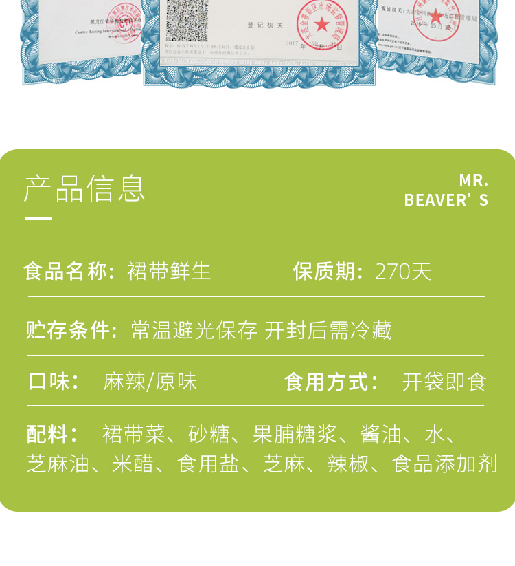 海狸先生休闲下饭菜麻辣裙带菜【蛋糕券价】