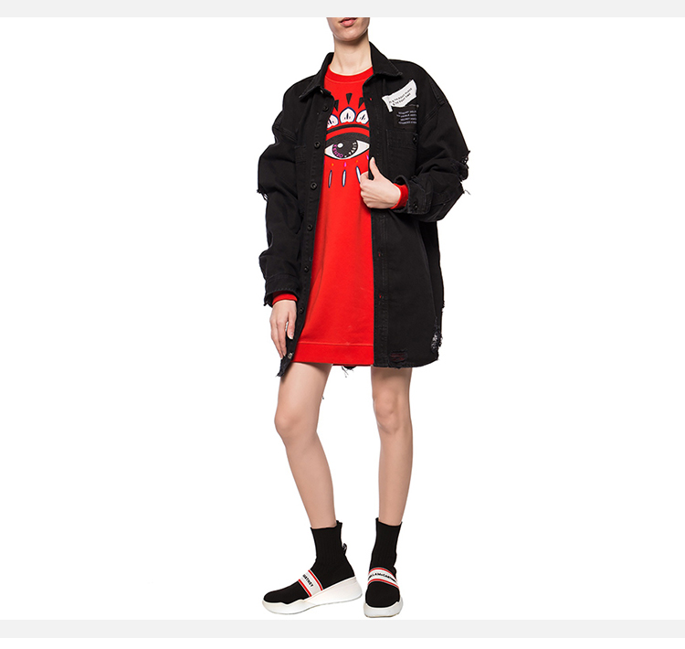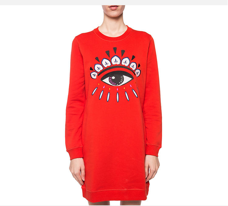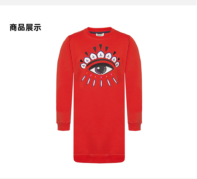 KENZO 高田贤三 女士棉质眼睛图案印花圆领长袖运动连衣裙 橘红色 F952 RO837 4XC 21