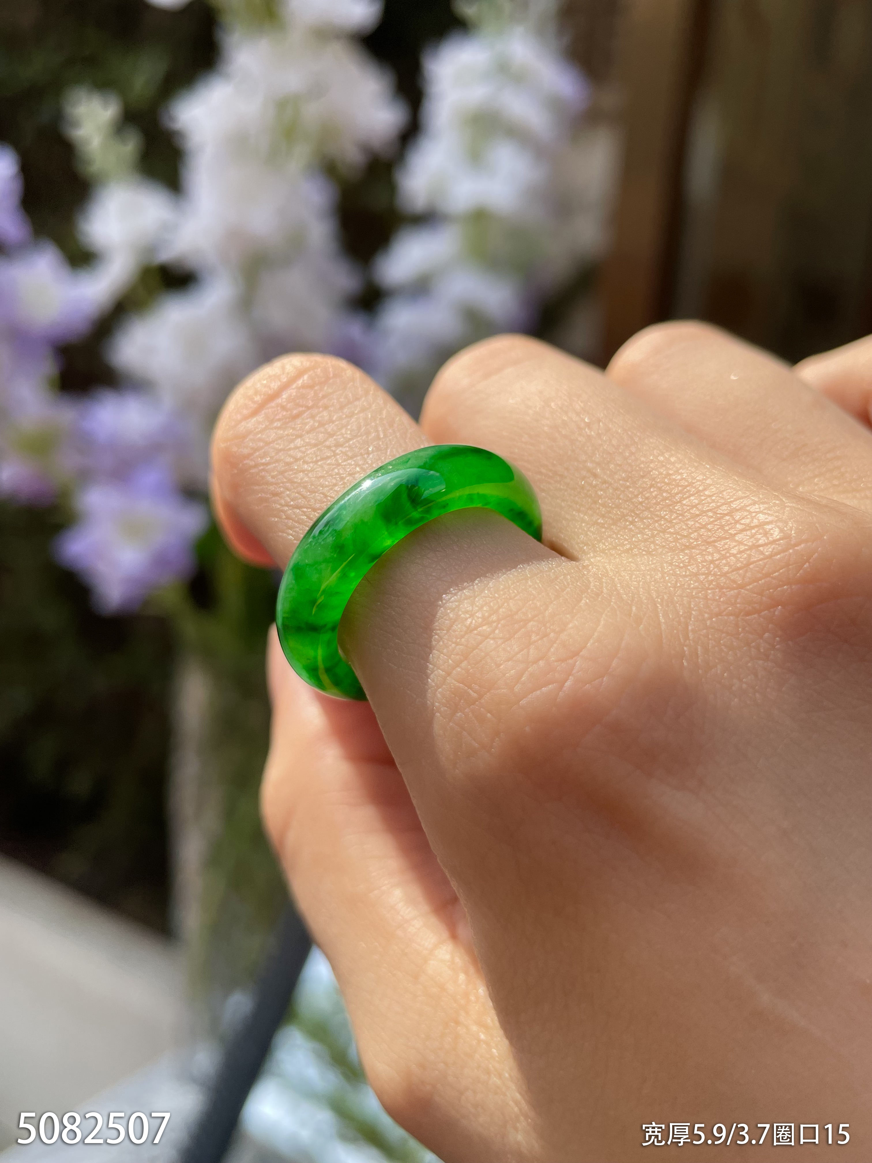 满色辣绿扳指【5082507】圈口15.0~具体价格微信咨询