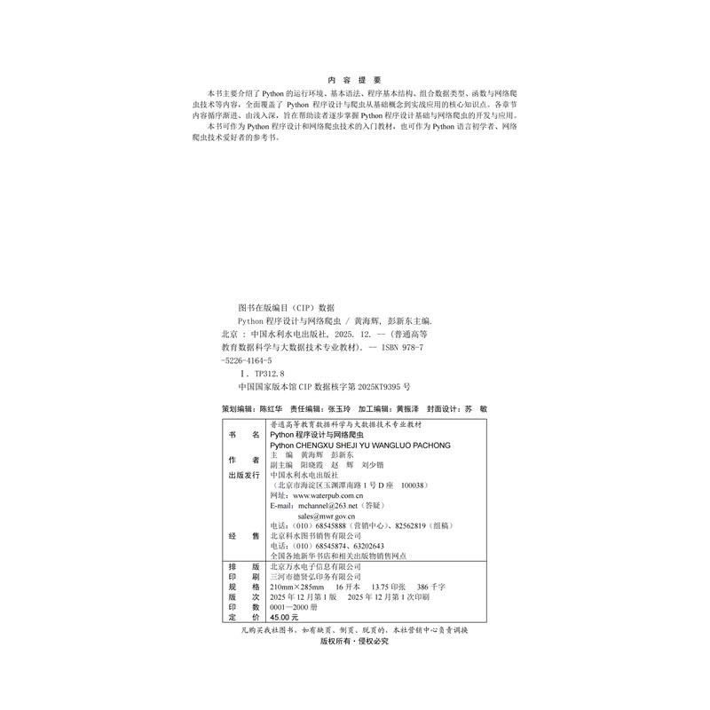 Python程序设计与网络爬虫(普通高等教育数据科学与大数据技术专业教材)
