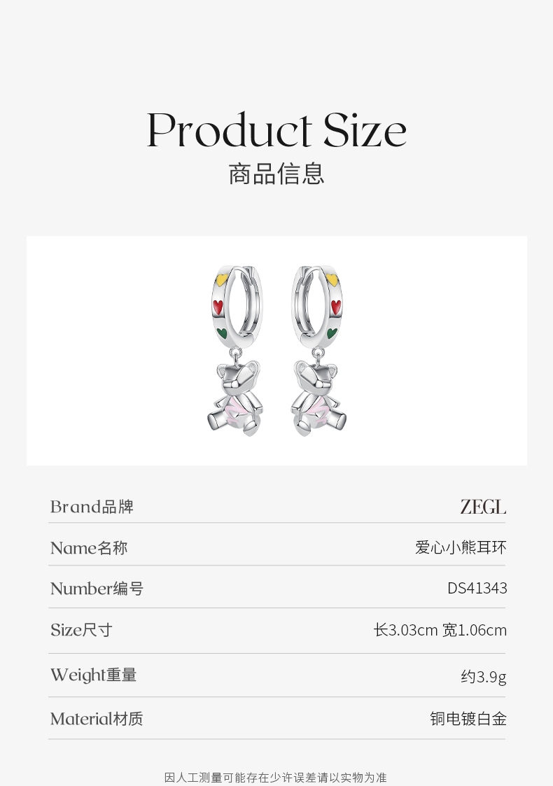 ZEGL设计师小熊系列耳环女小众设计感高级耳钉耳饰品