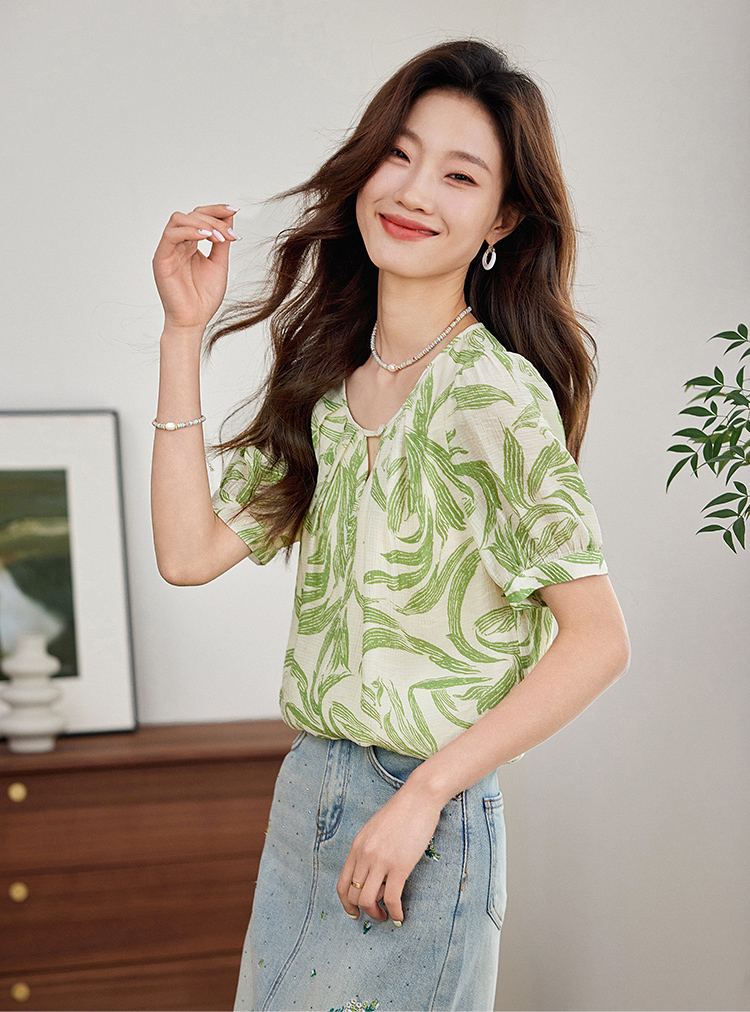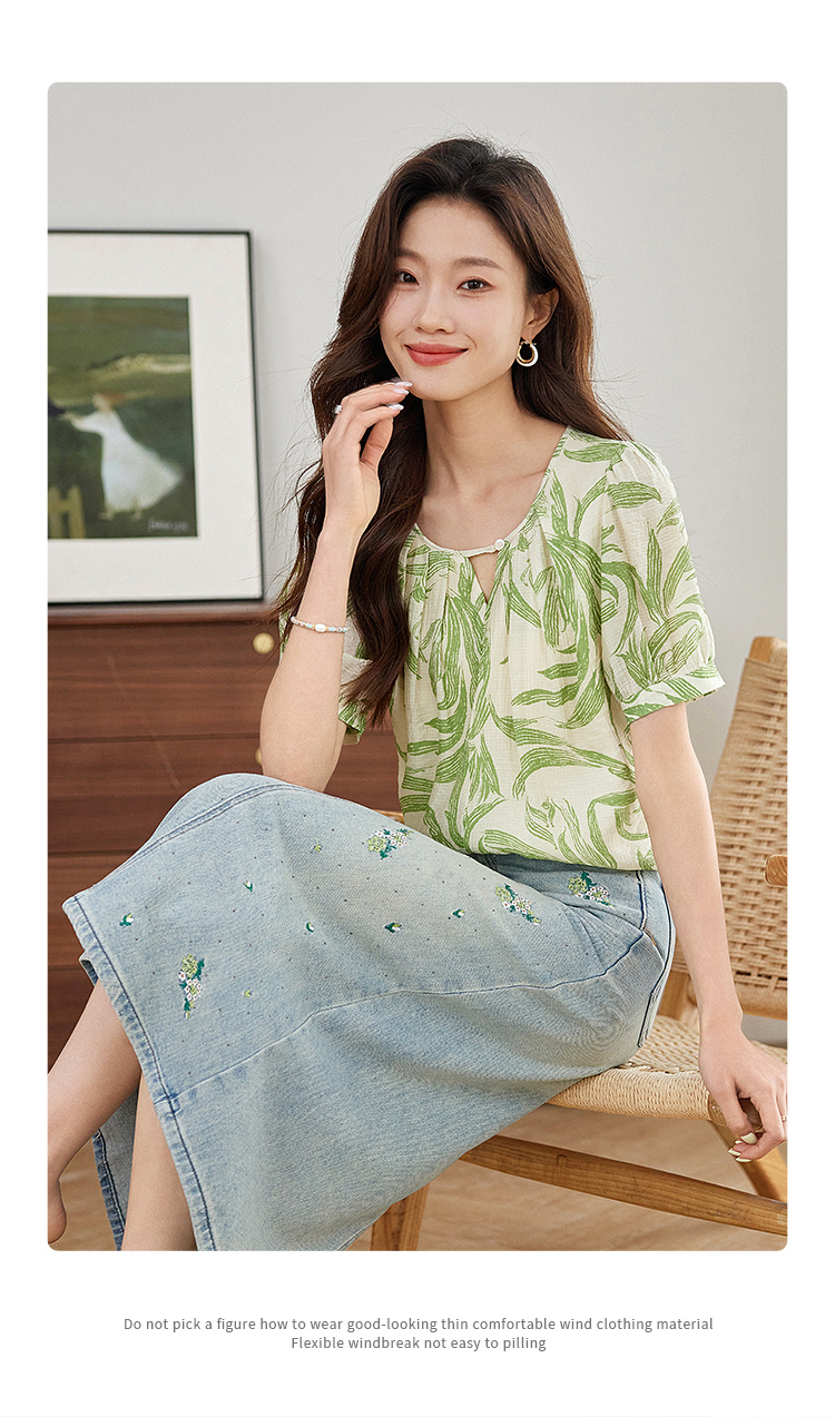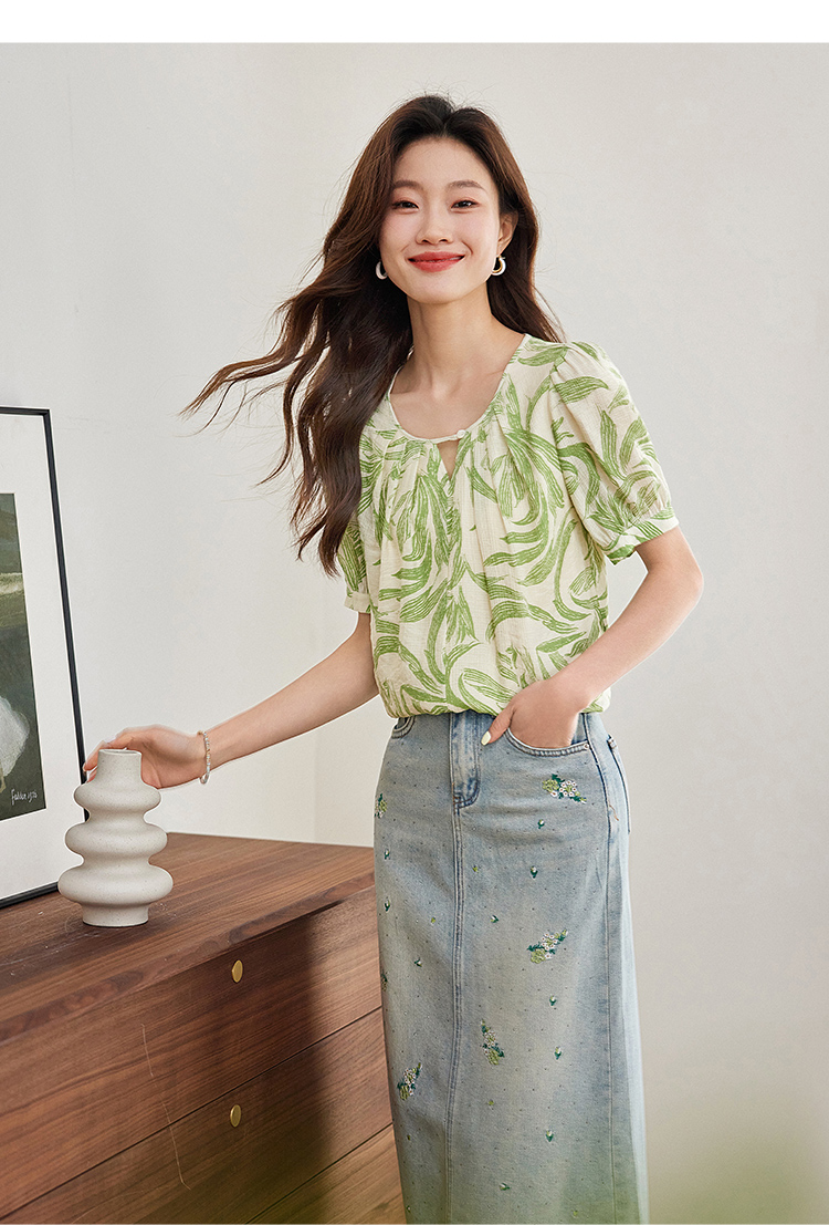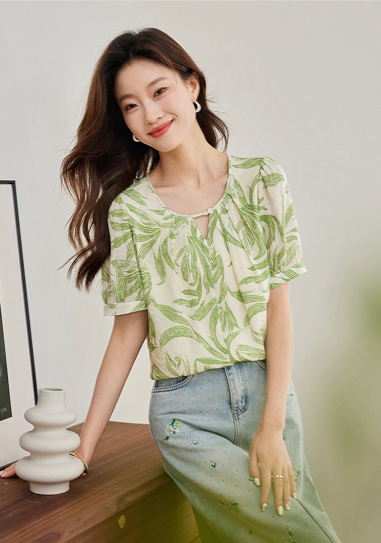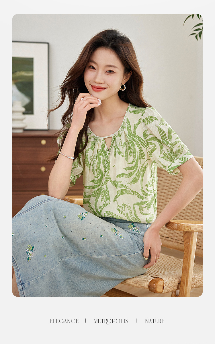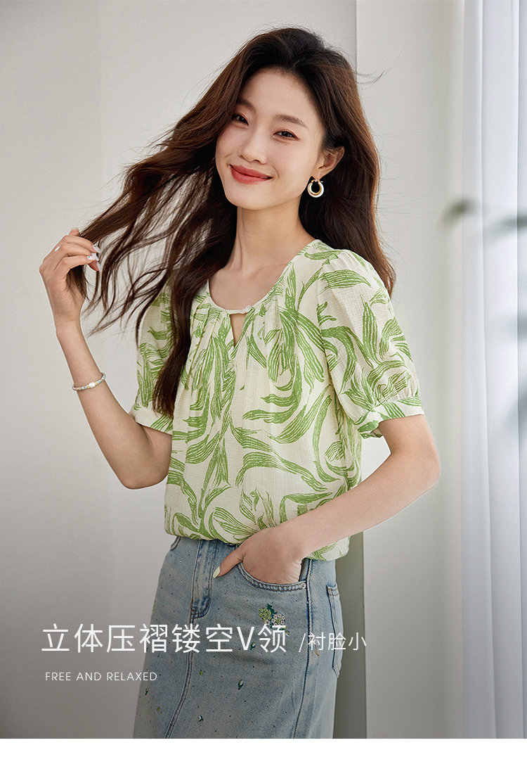 【专属特价】熙世界清新减龄小衫女2025夏款宽松舒适衬衫