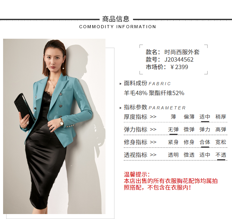 20344562 颈袖添香小西装品牌新款时尚装正装羊毛西服女 气质商务羊毛西装单西