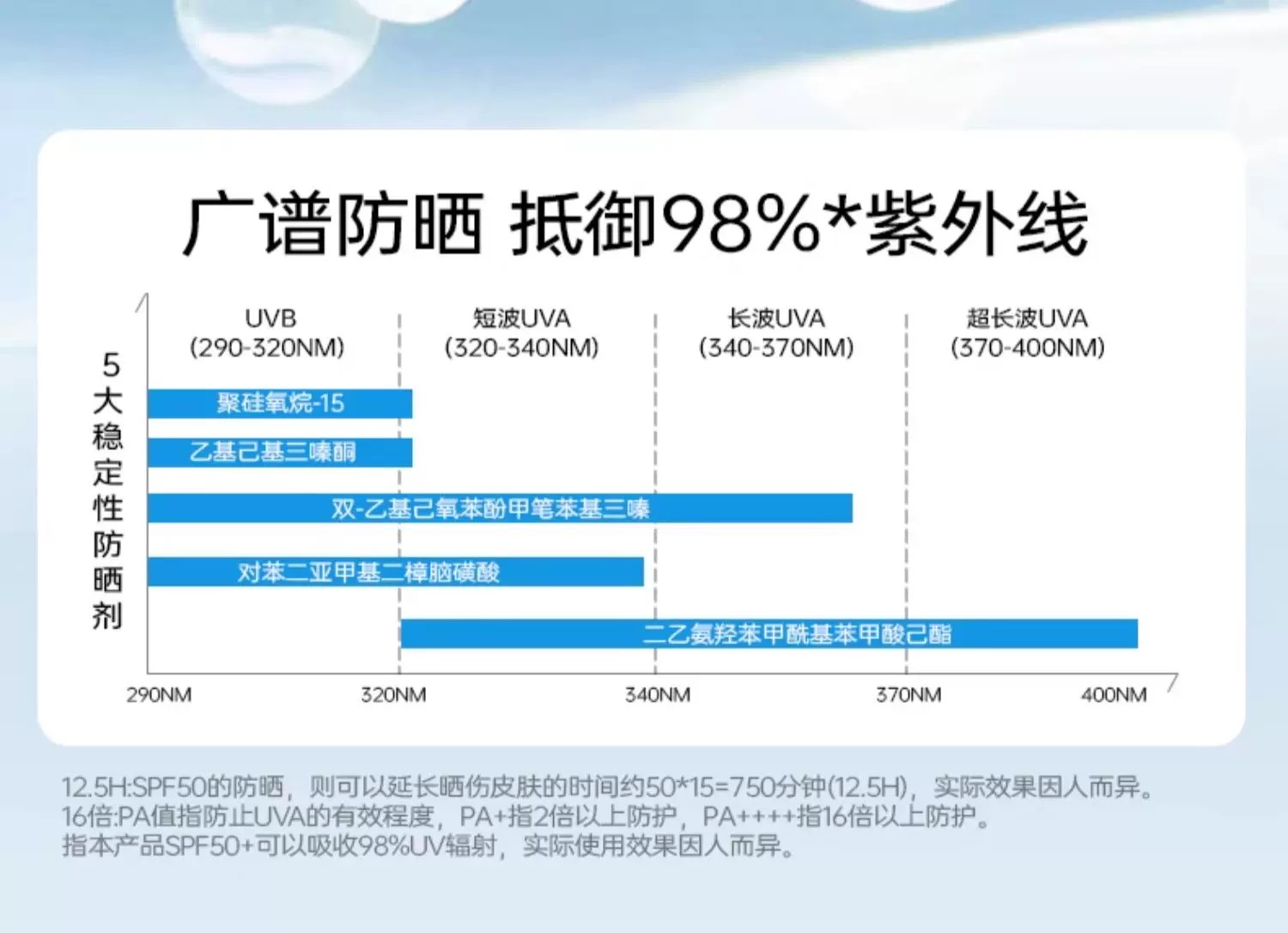 迅速散射分散照射到皮肤表面的UVA/UVB