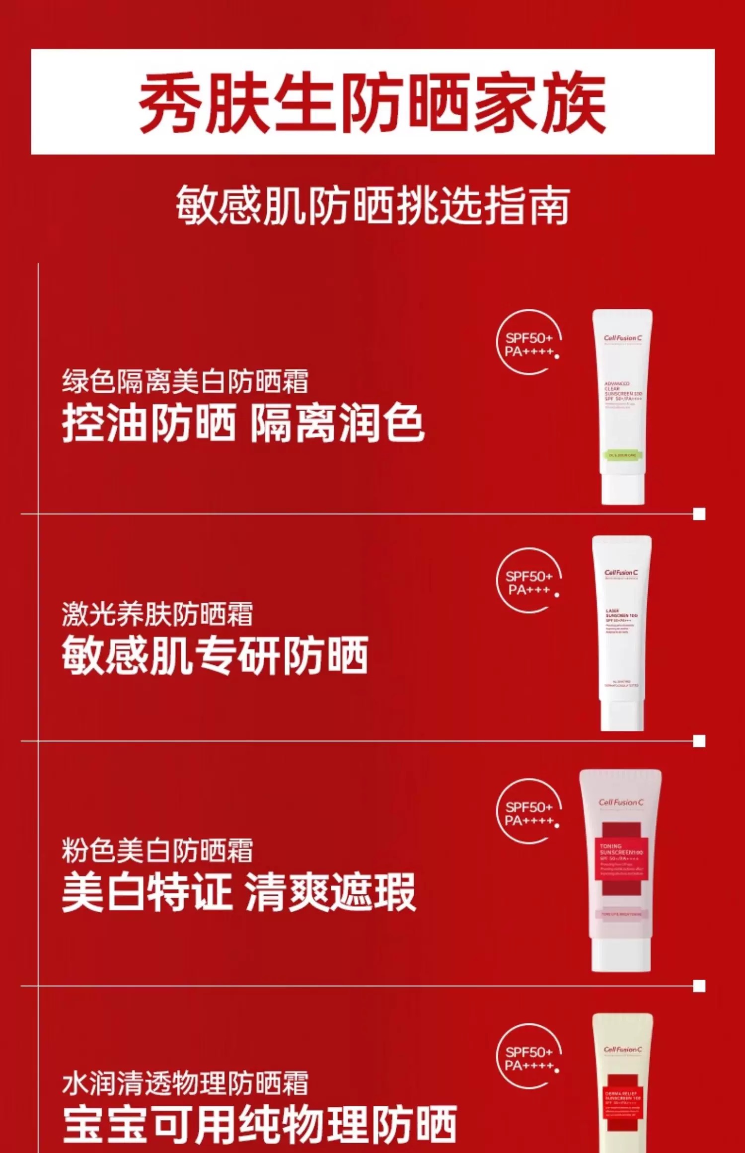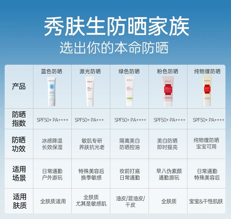秀肤生防晒霜合集 经典防晒PA+++/清爽防晒PA++++/水润轻薄防晒PA++++ SPF50+敏感肌面部清爽不油腻隔离二合一50ml