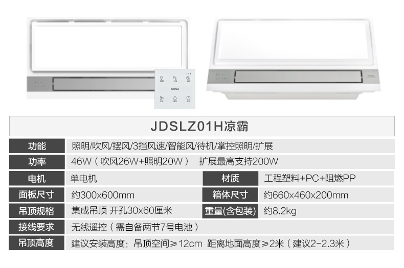 爆款🔥OPPLE欧普照明LZ01H厨房3合1变频凉霸