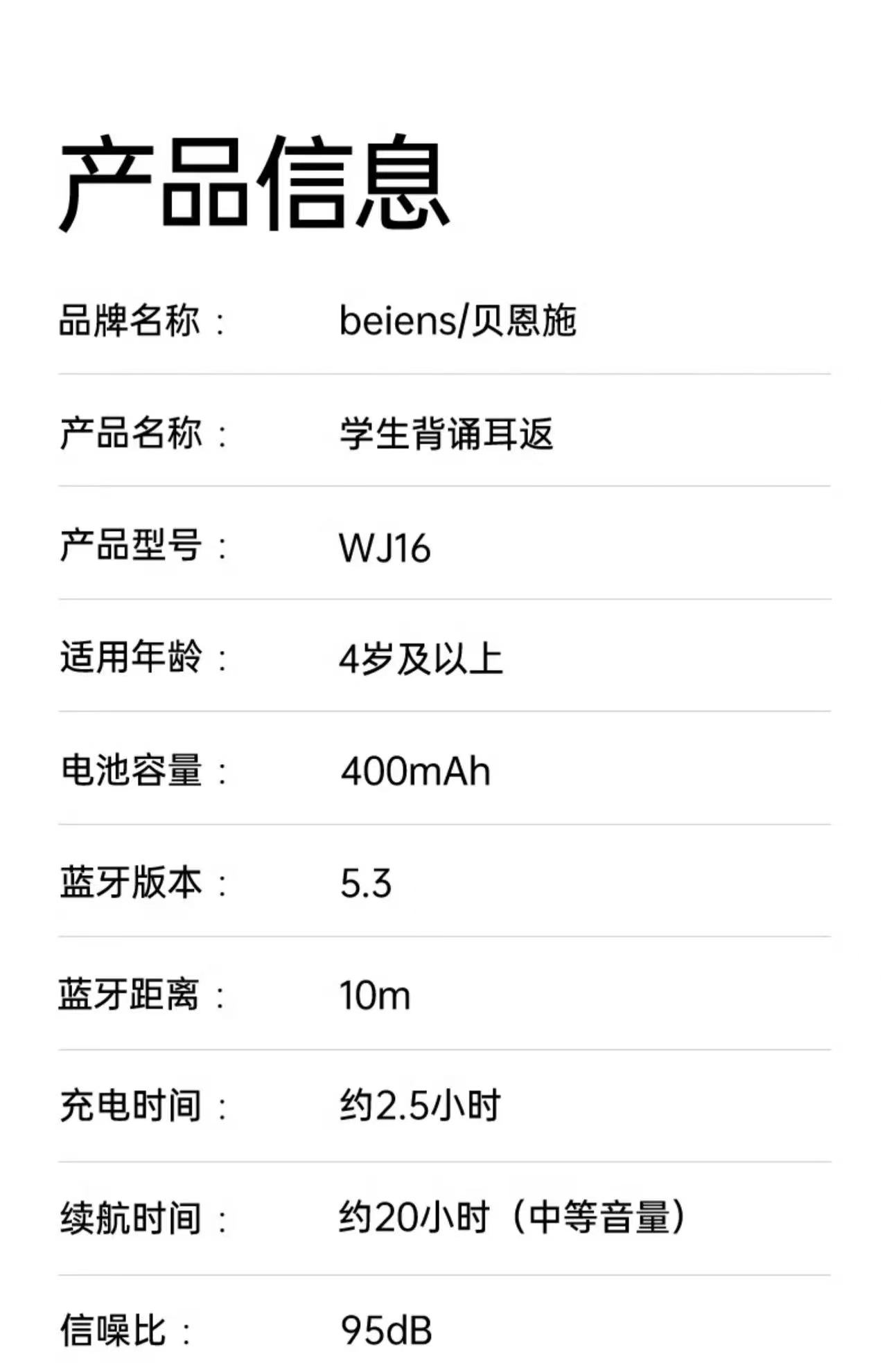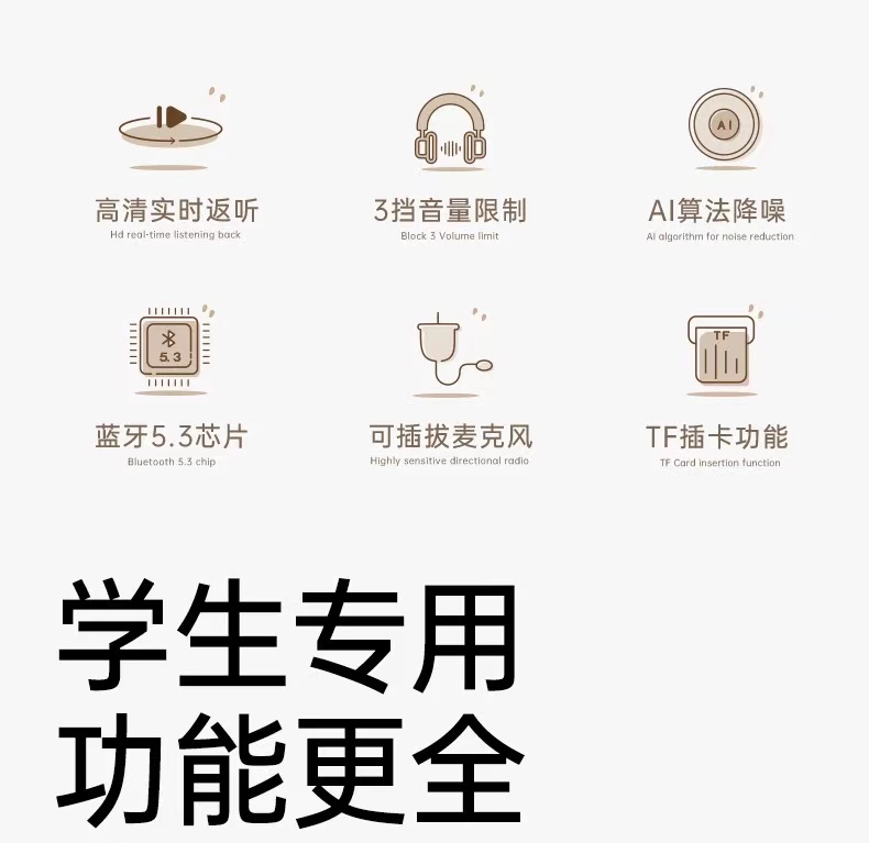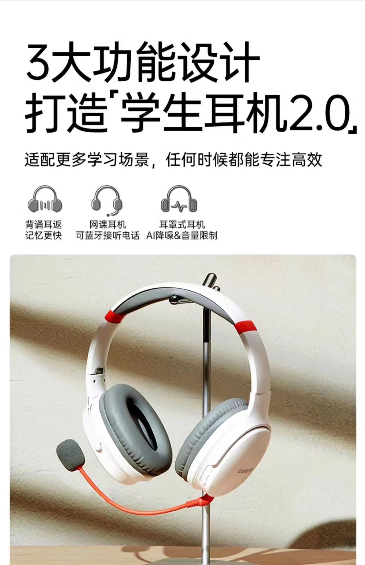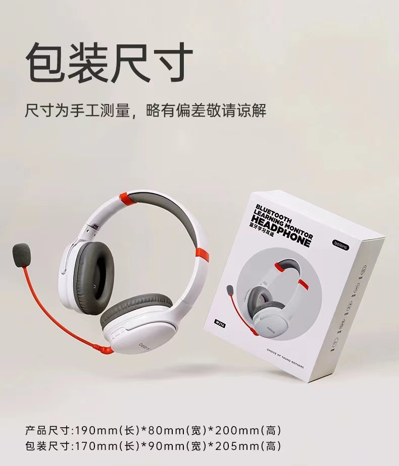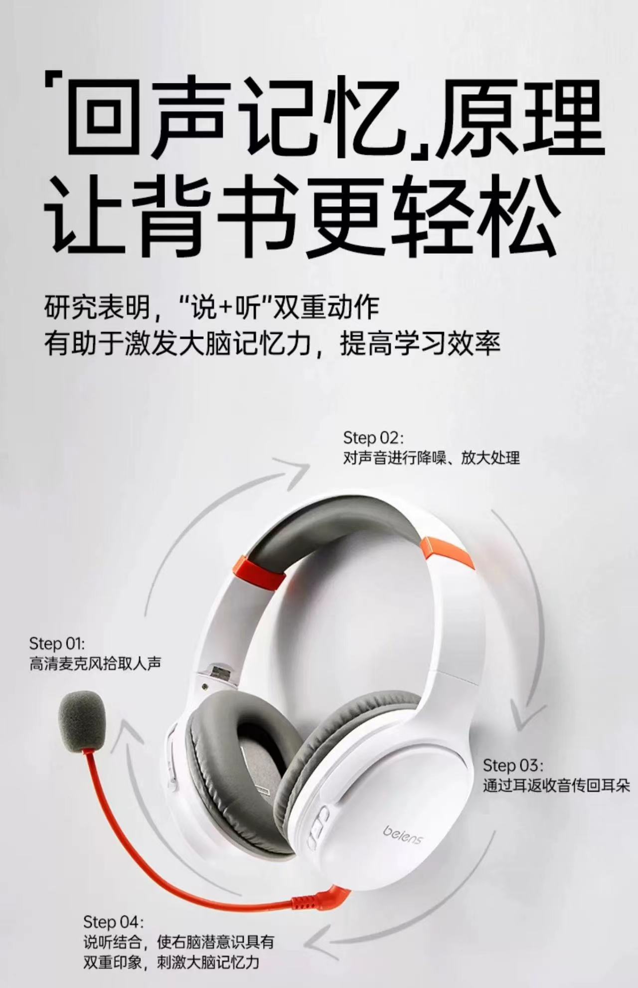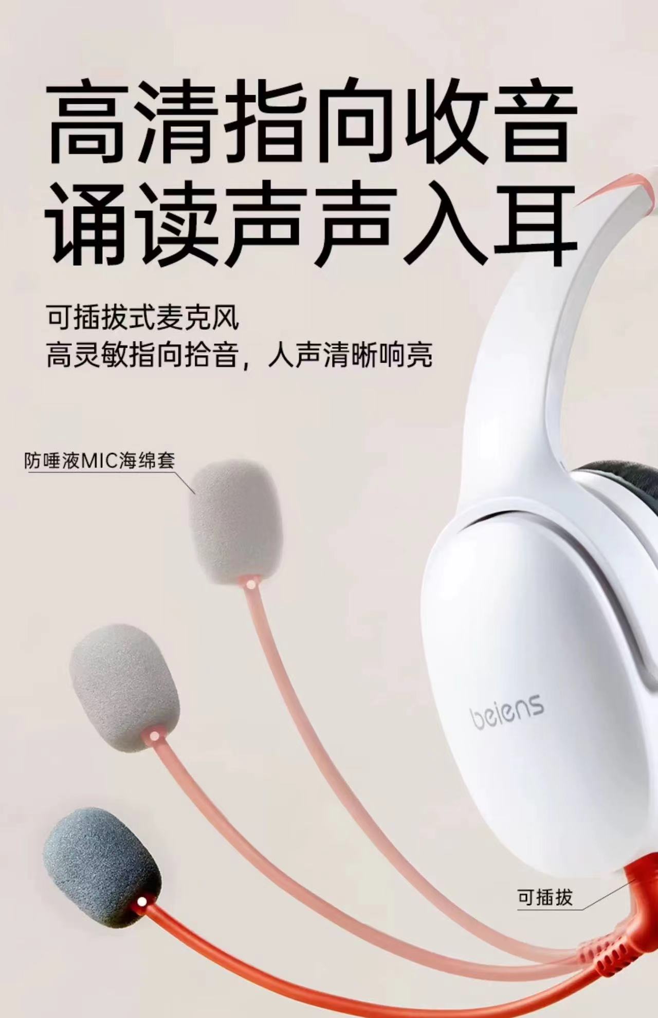 贝恩施儿童诵读耳返学生初中沉浸背书学习专用耳罩式耳机记忆神器WJ16