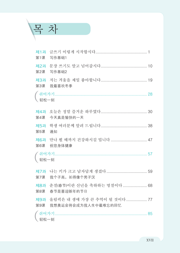 《韩国语写作教程 初级》考虑到中国大学的课程设置,教材分成初级和中级两册,每册分15课,一学期完成一册的教学。本教材旨在使中国大学生能用韩文流畅地表达自己的想法,因此主要从中国人的视角开展写作训练。教材中文体类型丰富,使学生能根据写作目的选择不同文体进行学习。