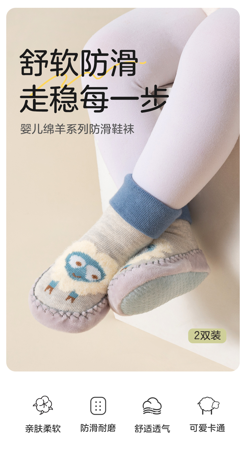 【任选两件,买一送一】婴儿秋冬防撞防滑地板袜学步袜袜子2双装