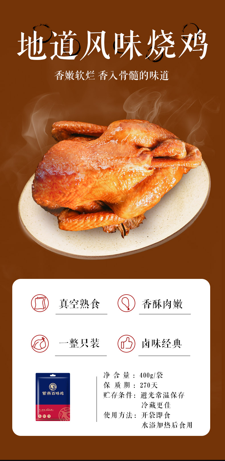 紫燕燕小二烧鸡400g扒鸡卤味熟食开袋即食