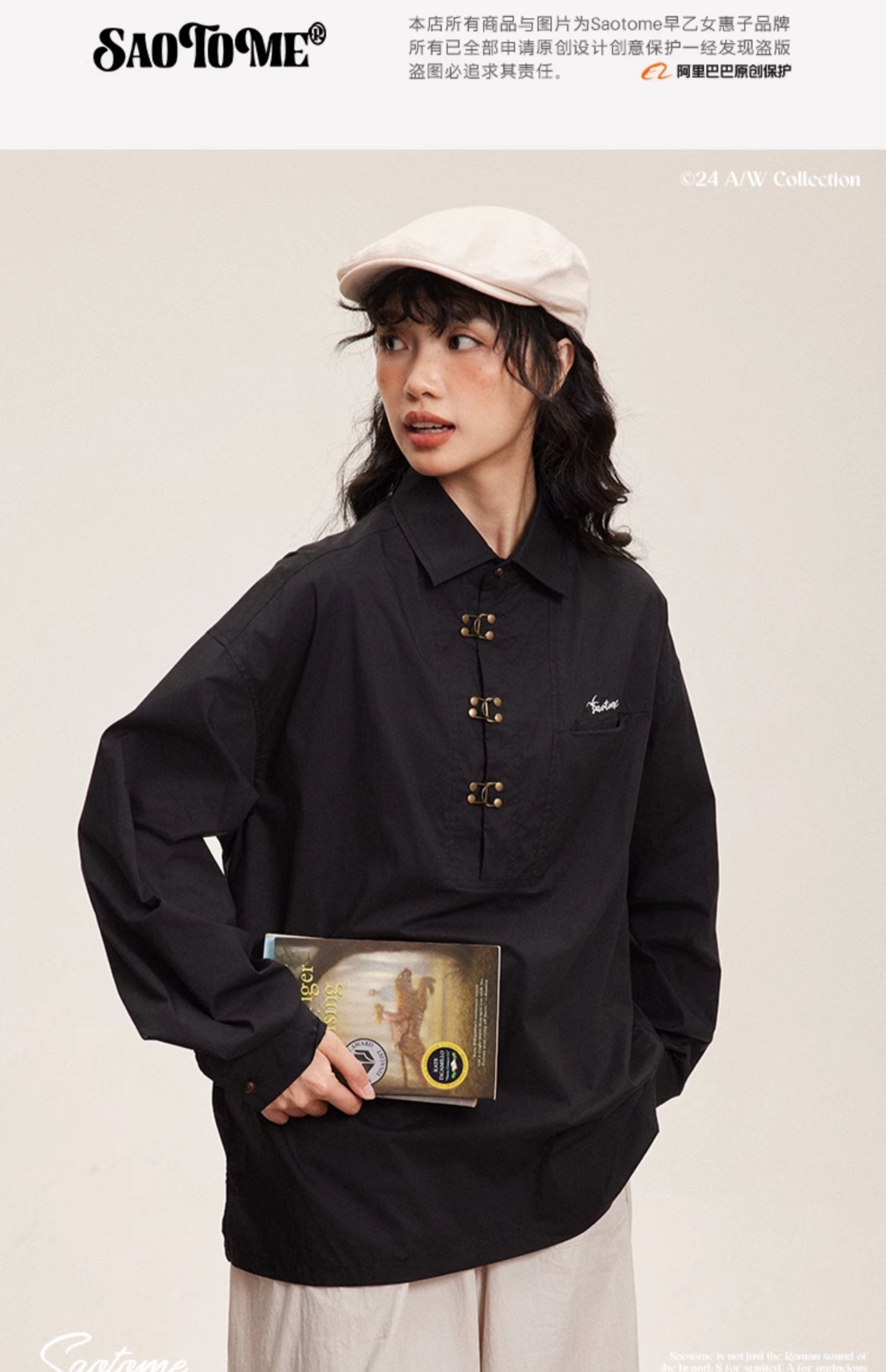 早乙女惠子saotome/STMCS243214/新中式钩扣长袖衬衫