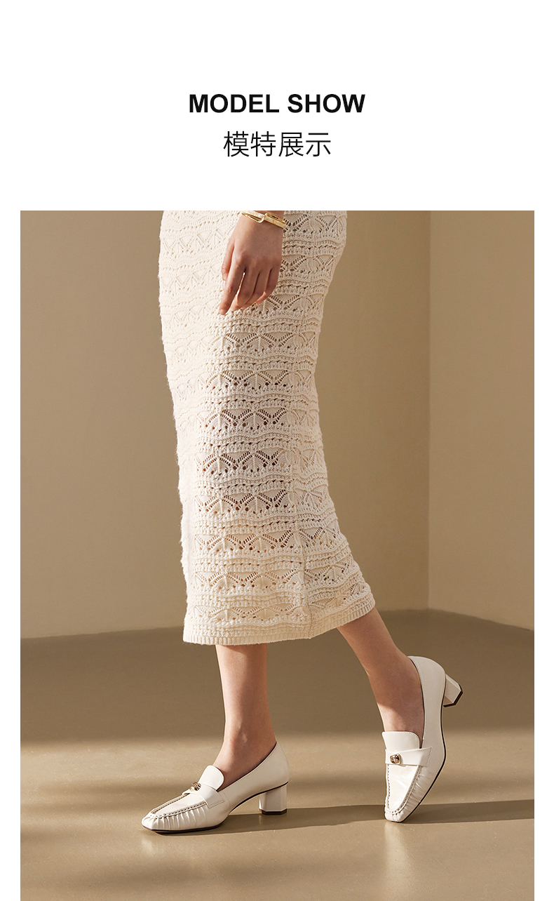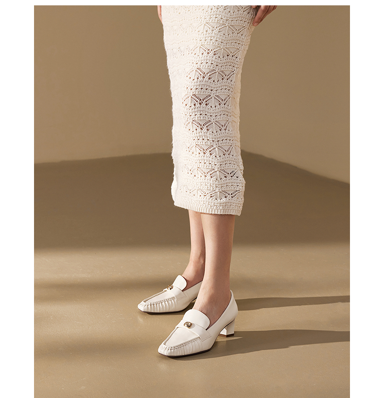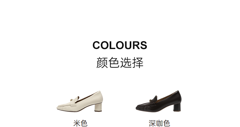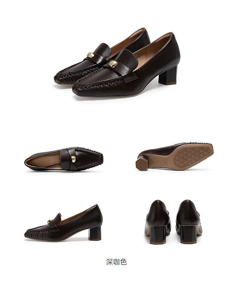 natursun方跟乐福鞋气质通勤显瘦小方头不累脚高跟鞋N25446018