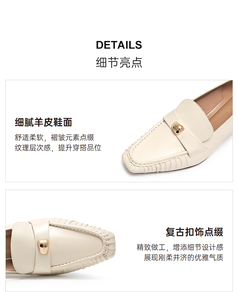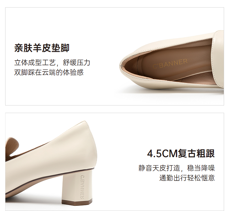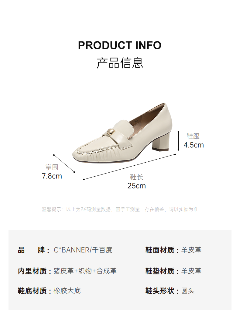 千百度粗高跟乐福鞋女春季通勤浅口小皮鞋羊皮正装豆豆鞋A24132626