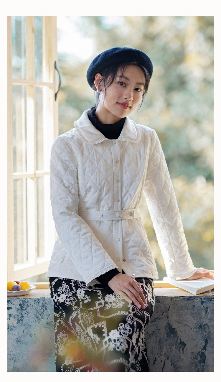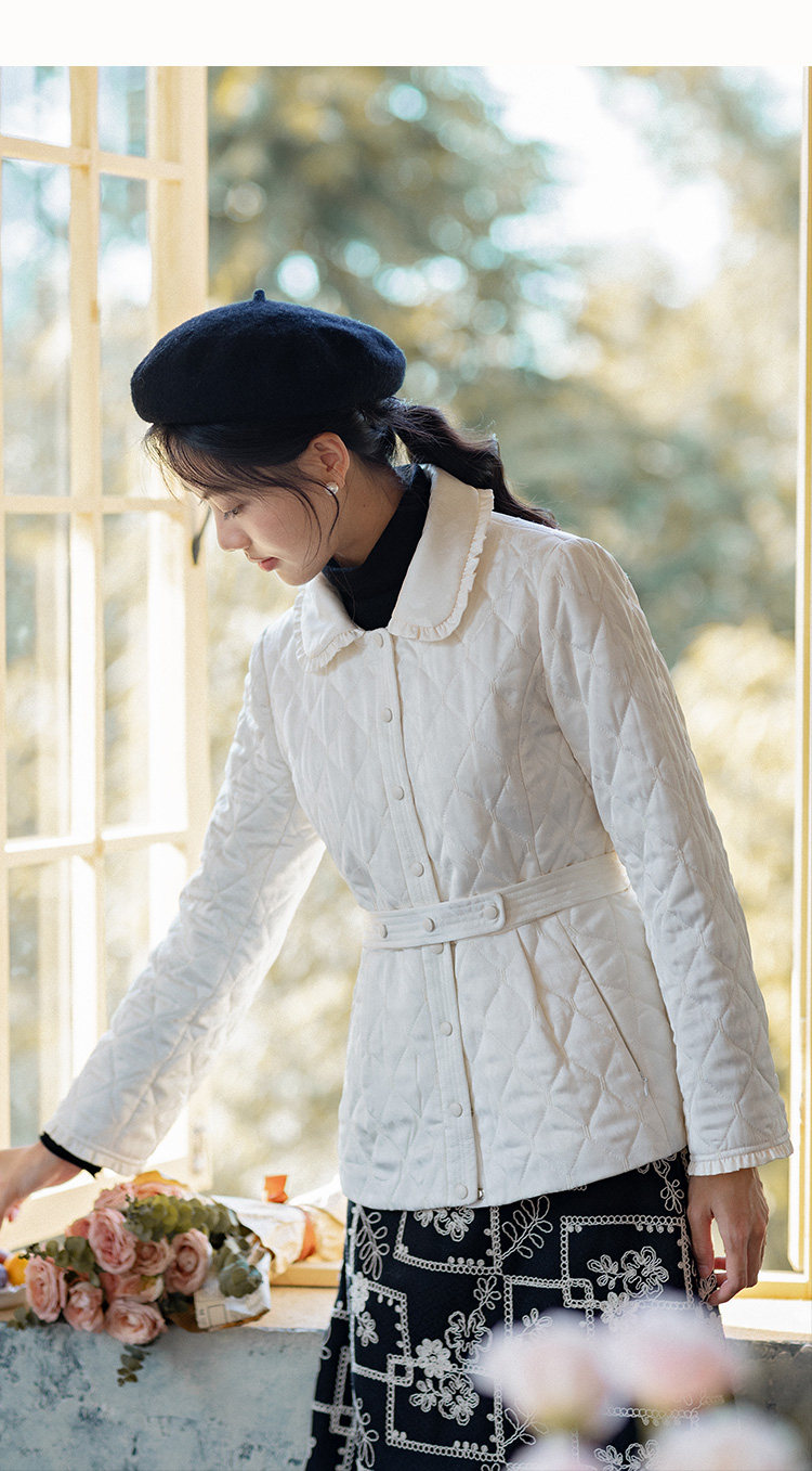 红念米白色棉服女短款小个子设计感2025冬季新款气质棉衣外套上衣