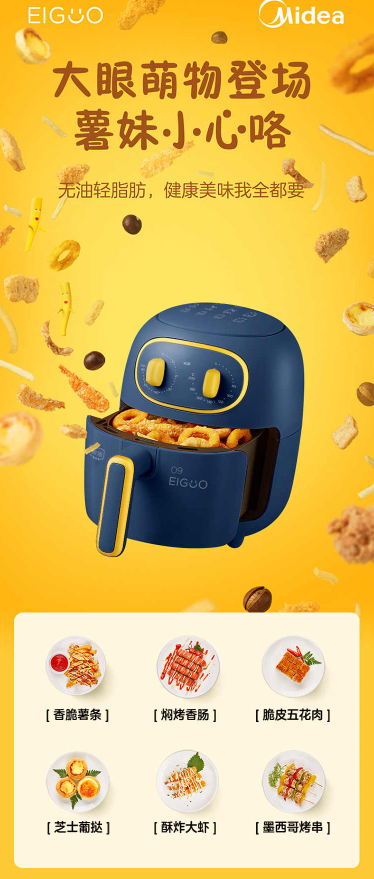 美的 Midea KZ30206L 捣蛋鬼系列空气炸锅无油煎炸3升