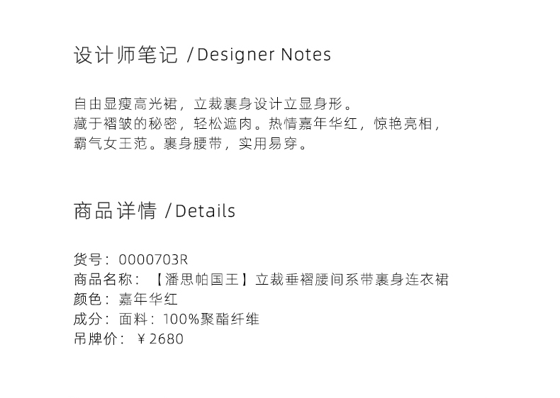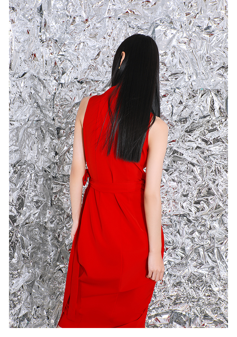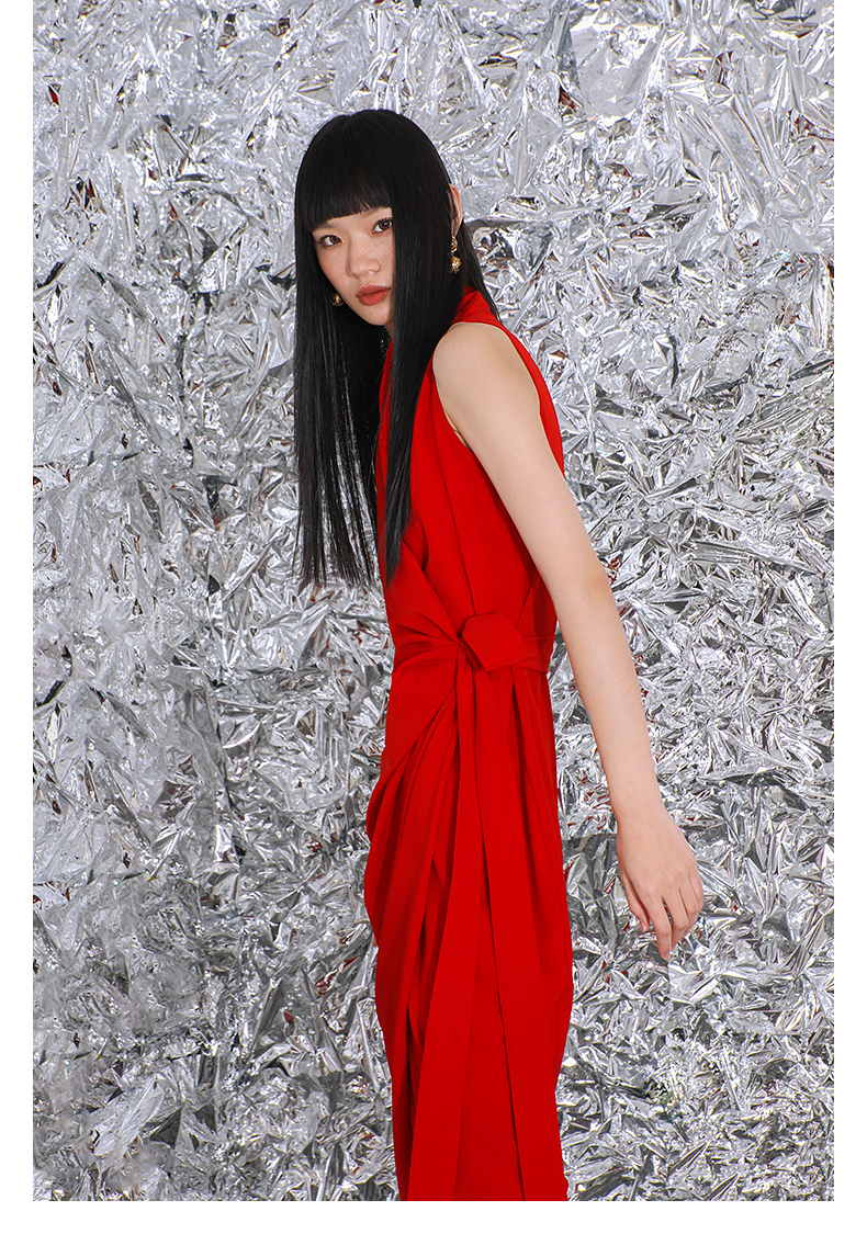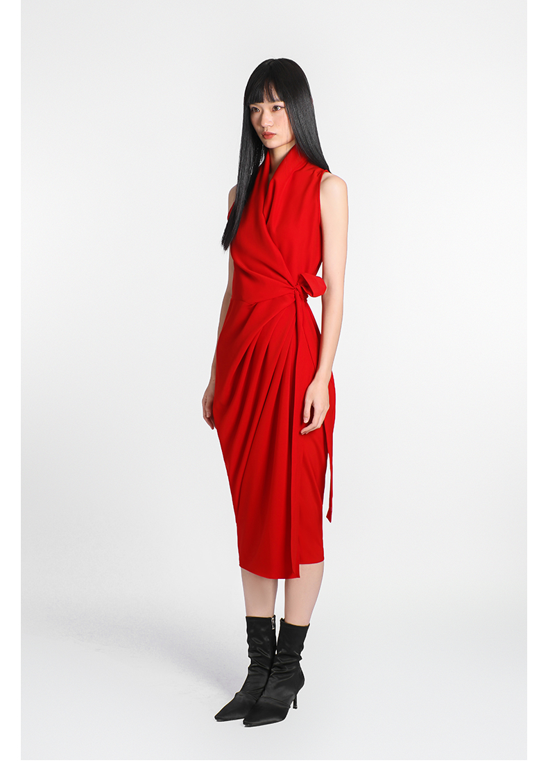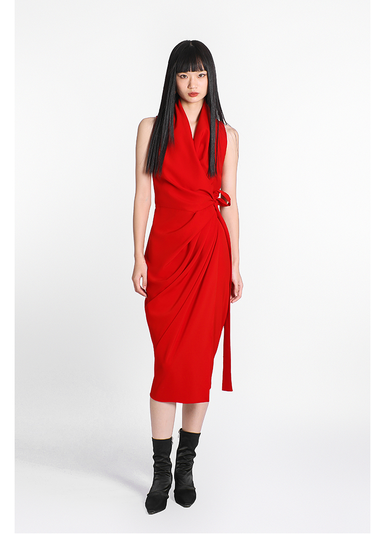 【潘思帕国王】立裁垂褶腰间系带裹身连衣裙/0000703R