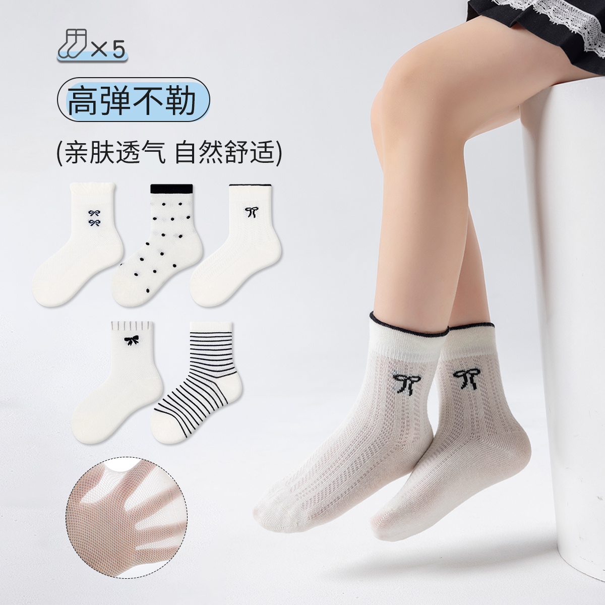 【柠檬舒品lemonsox春夏儿童网眼袜】5双网眼袜💰19.9❗夏天穿不沉闷,细密网眼设计,透气不闷汗 !