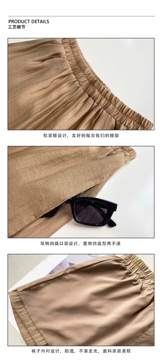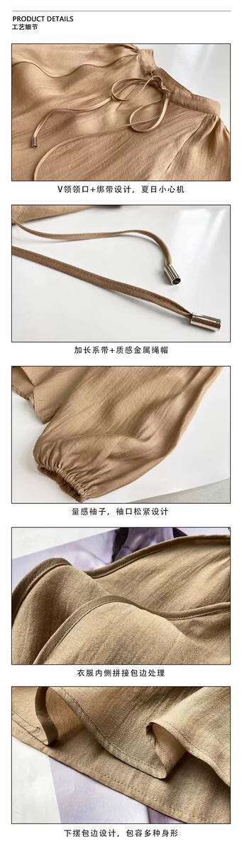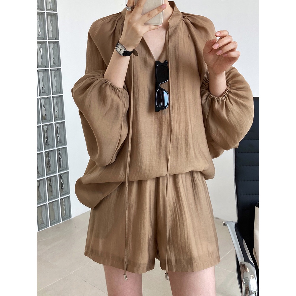 (清仓现货)【社群供V】2022夏季新品时尚休闲系带长袖防晒衣+阔腿短裤两件套天丝贡缎