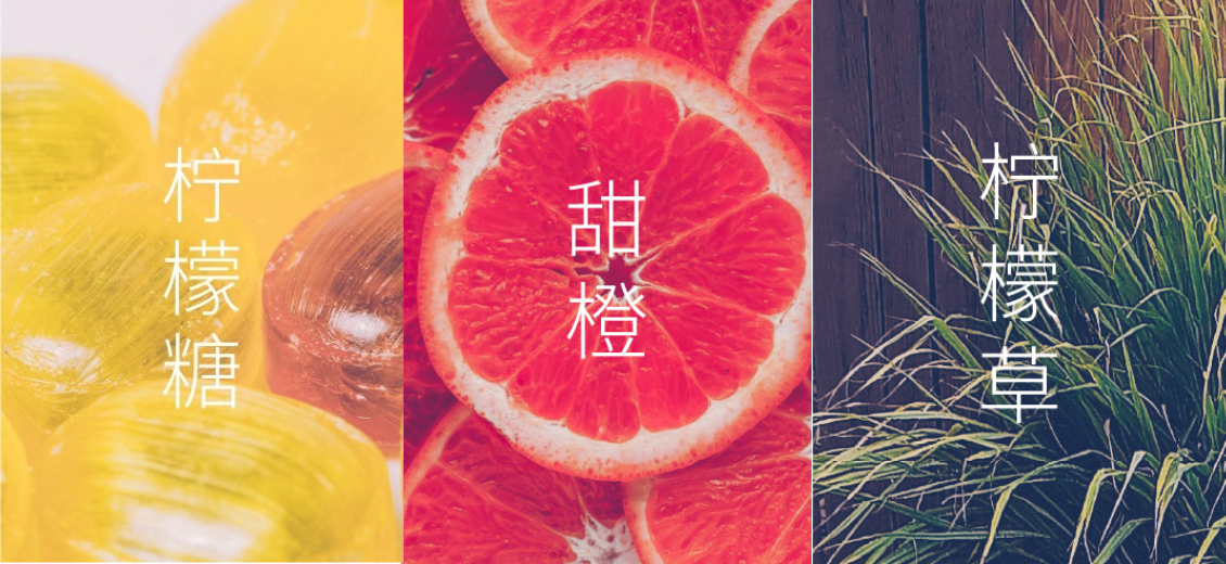 柠檬硬糖、甜橙、柠檬草、桃子