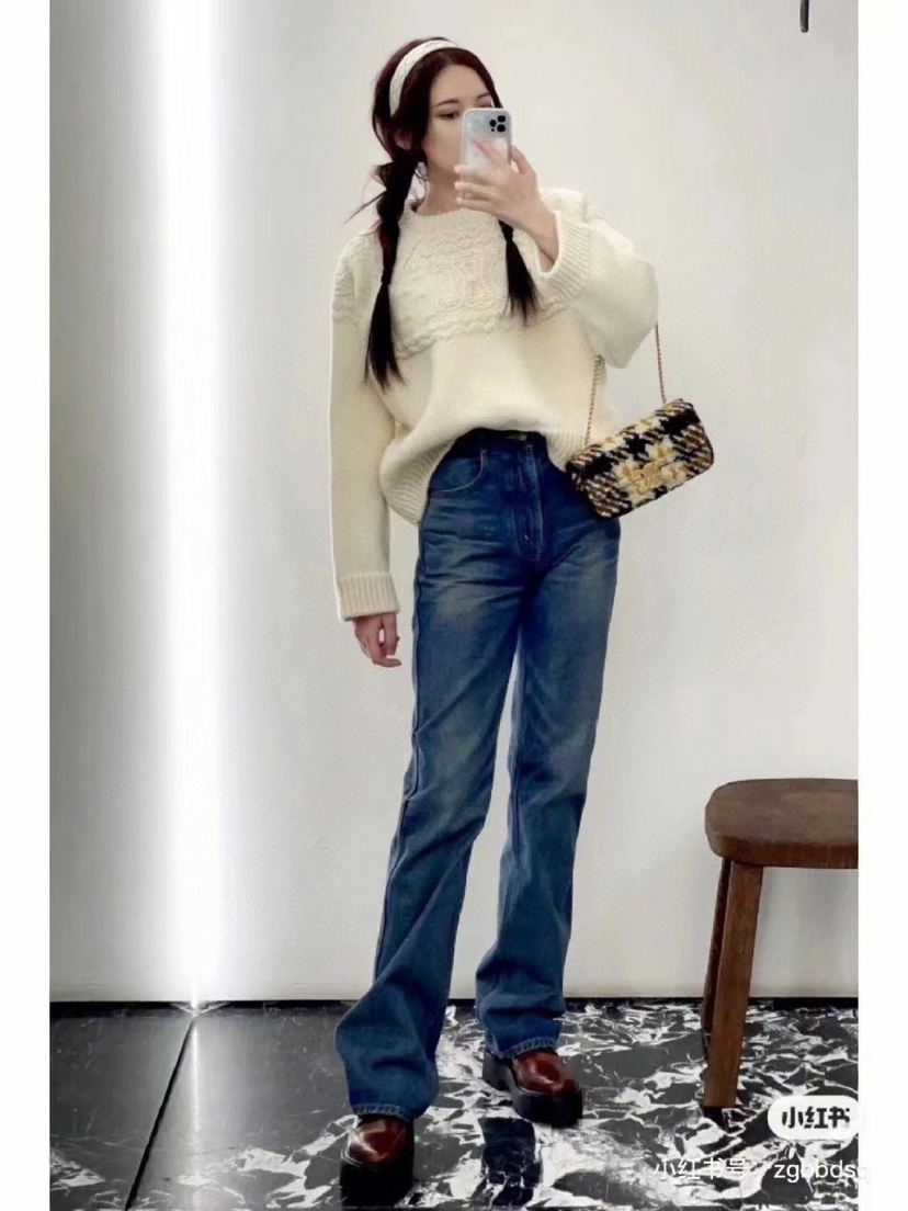 48-8 首日巨折 谁穿都要卷裤脚 Ce经典款 猫须微喇 超弹力 阔腿牛仔裤 大长腿