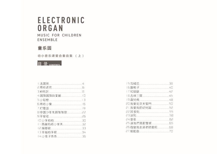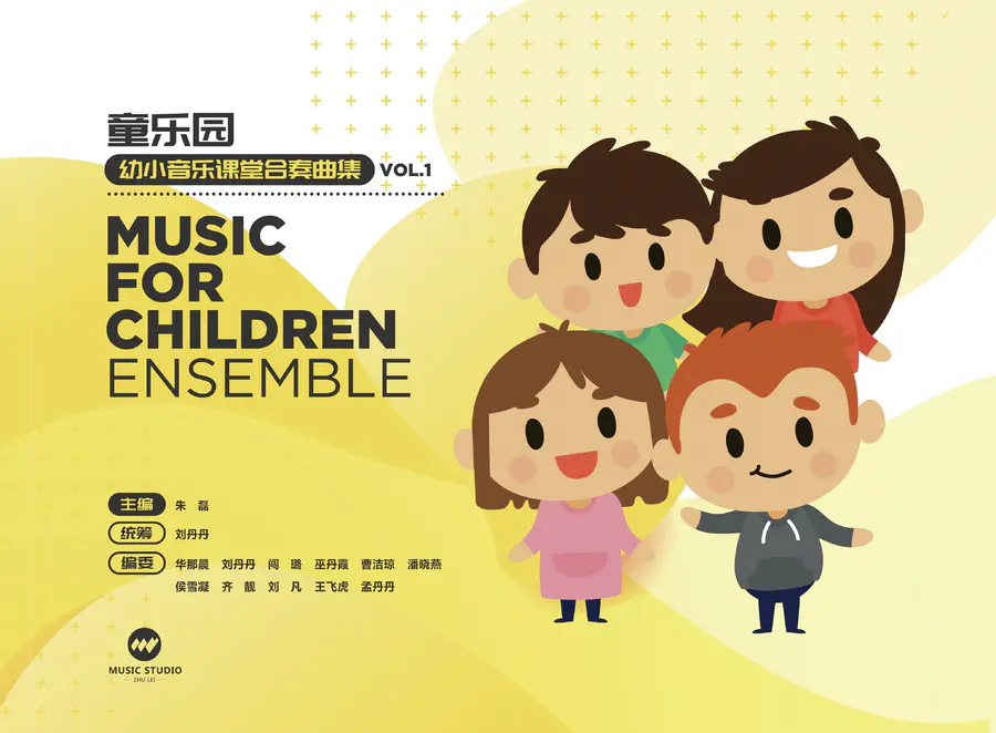 本合奏曲集至少需要四个小朋友来完成合奏,每位小朋友担任演奏其中一个声部,授课老师请为每位小朋友配备一套曲集。