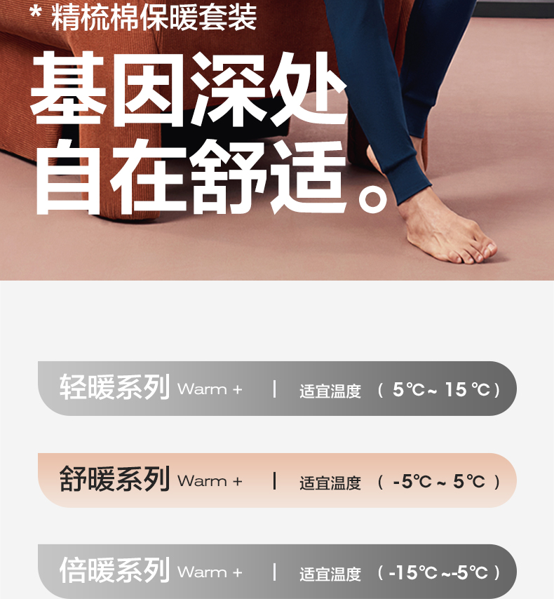 柒牌男装5A抗菌保暖套装新疆棉轻柔舒适全面吸湿蓄热透气打底衫男129F70310