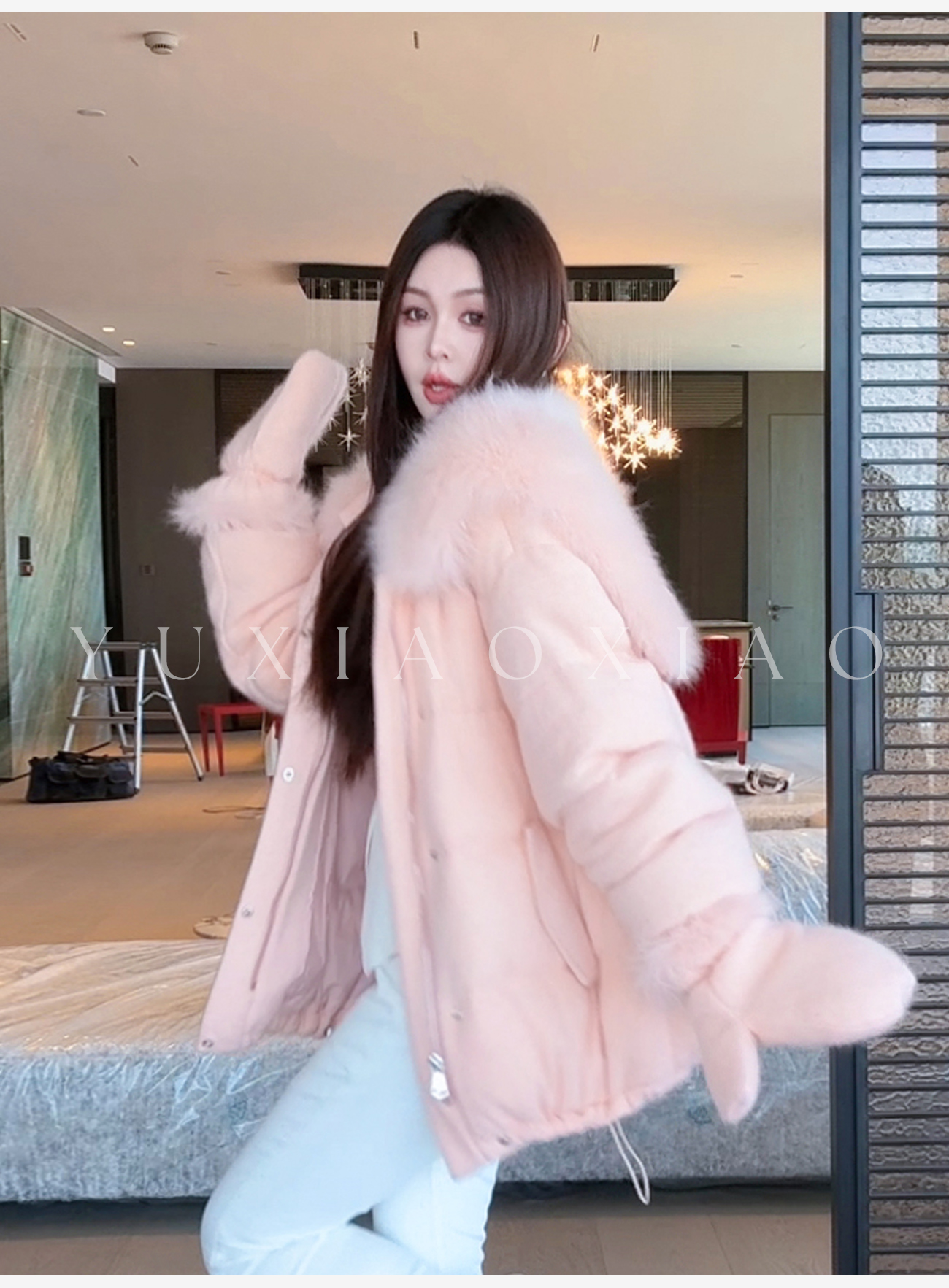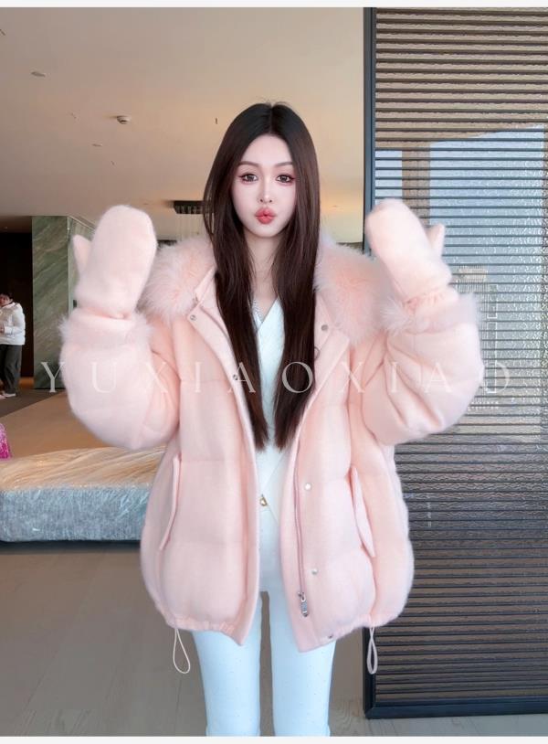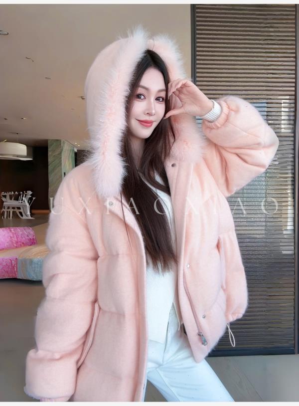 余潇潇【雪地暖炉】100绵羊毛拼接山羊绒填充高克重95白鹅绒羽绒服