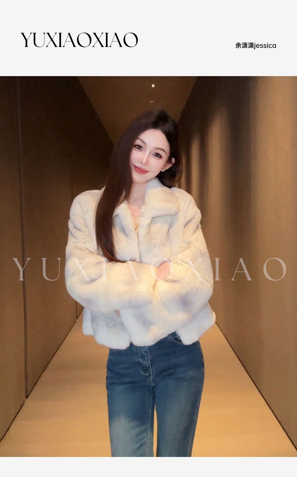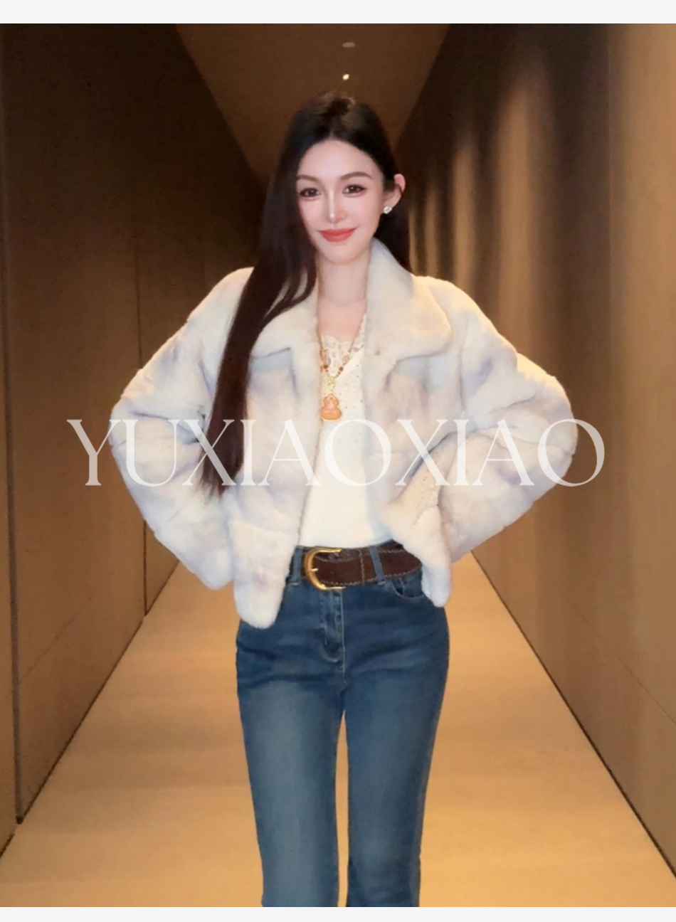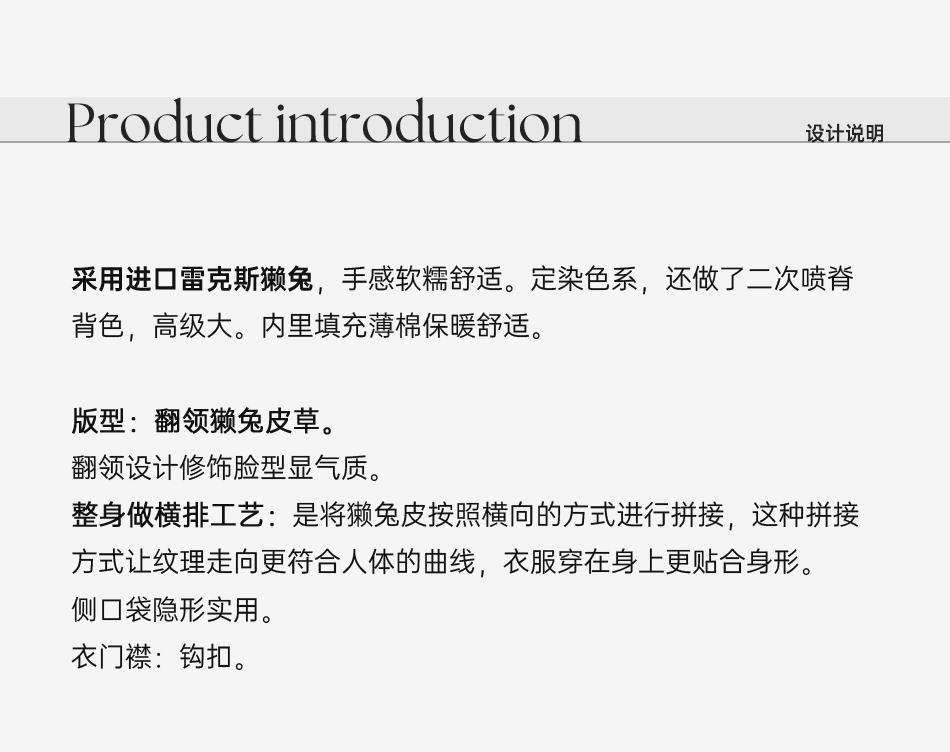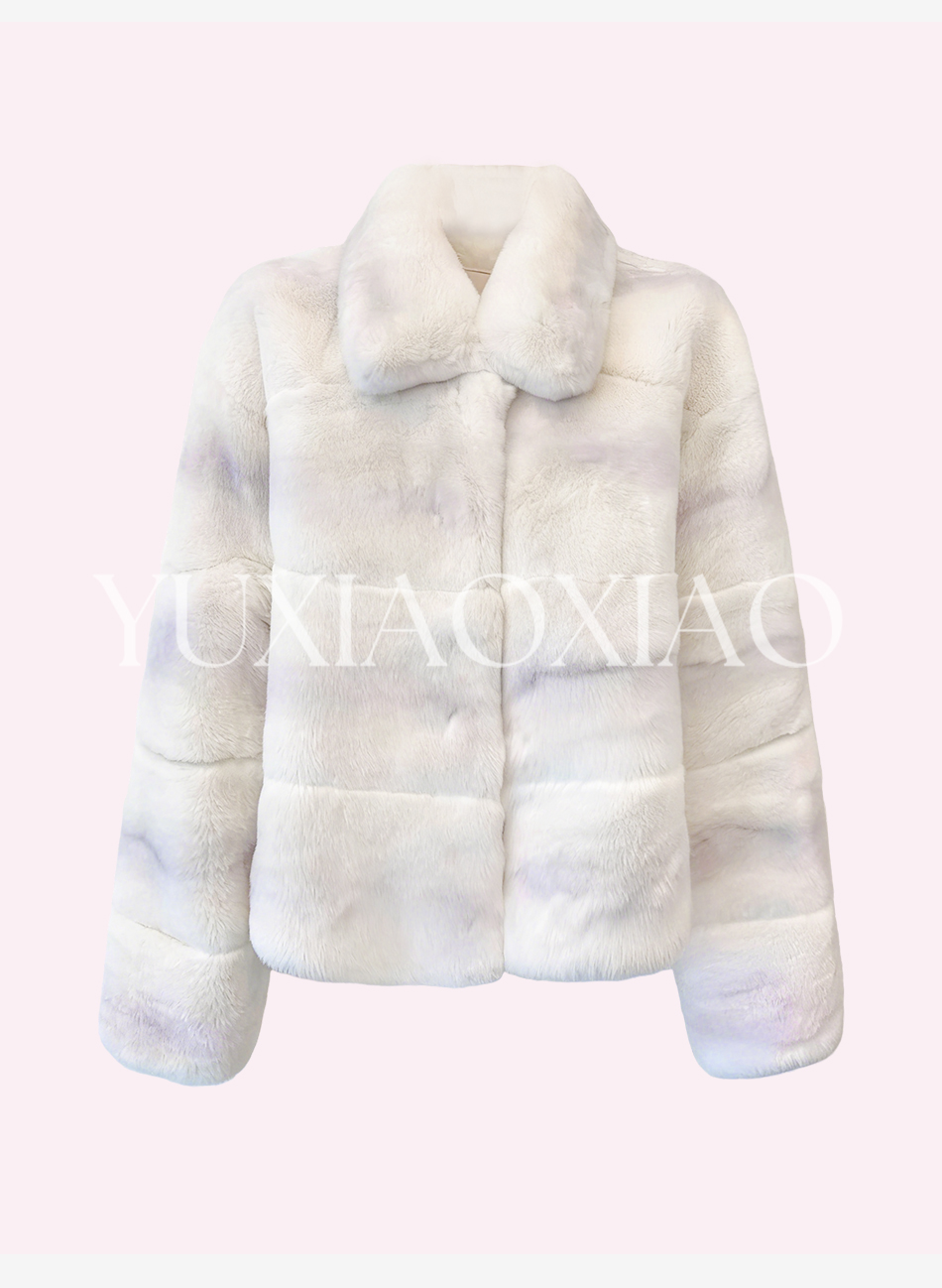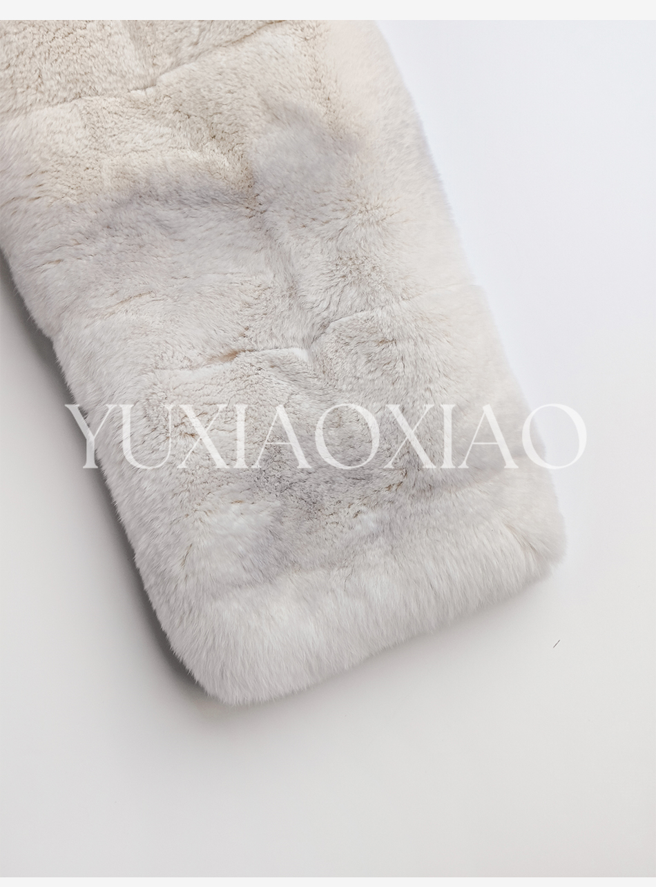 余潇潇【柏林月光】横排雷克斯獭兔毛填充薄棉保暖舒适翻领皮草