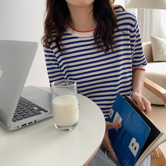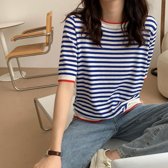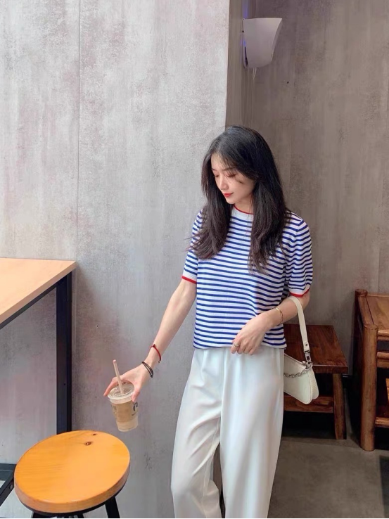 它比普通T恤多了一份优雅随性, 不仅可以当做内搭穿在里面,施展叠穿大法。 由内而外散发着一种青春的魅力~💗 热夏时节,还可以单穿, 🌈随便搭配上牛仔裤,A字半身裙 都是不错的选择,吸睛大方又优雅~ 有了这款百搭条纹针织衫, 衣柜里的衣服你都能拿出来搭,一件顶N件‼️