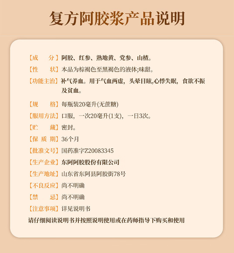 东阿阿胶 复方阿胶浆20ml*48支/盒