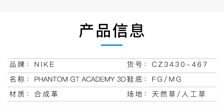 NIKE/耐克PHANTOM GT 3D中端FG/MG青少年足球鞋CZ3430-467