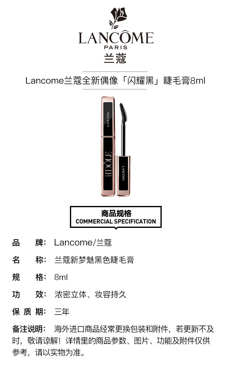 【预售 急单慎拍】Lancome兰蔻全新偶像睫毛膏9ml「闪耀黑」